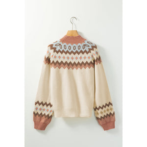 Geometric Mock Neck Long Sleeve Sweater