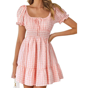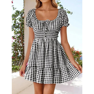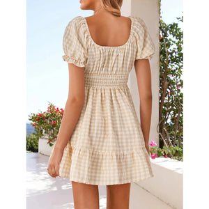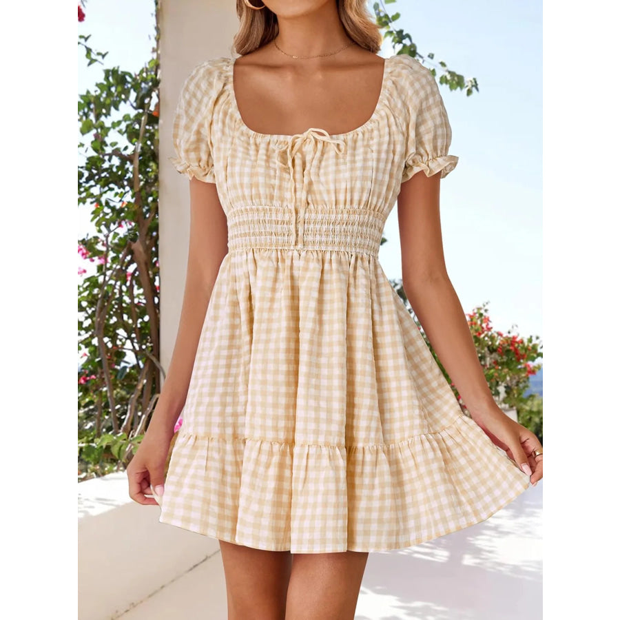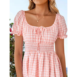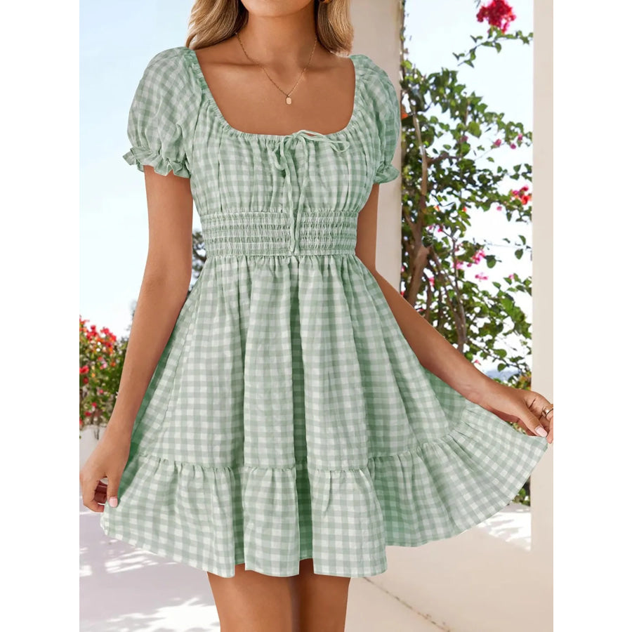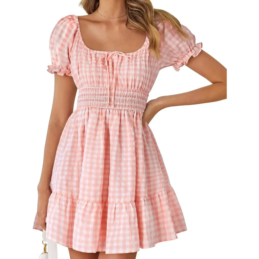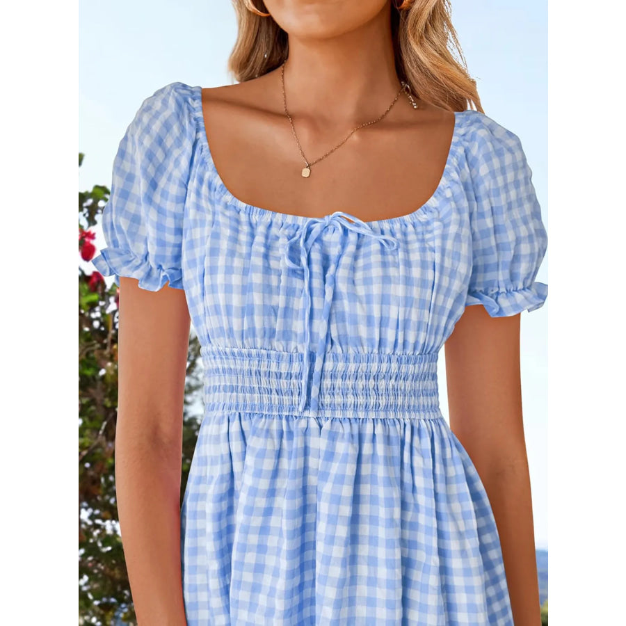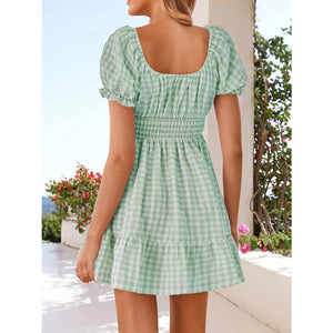 Gingham Smocked Puff Sleeve Summer Dress