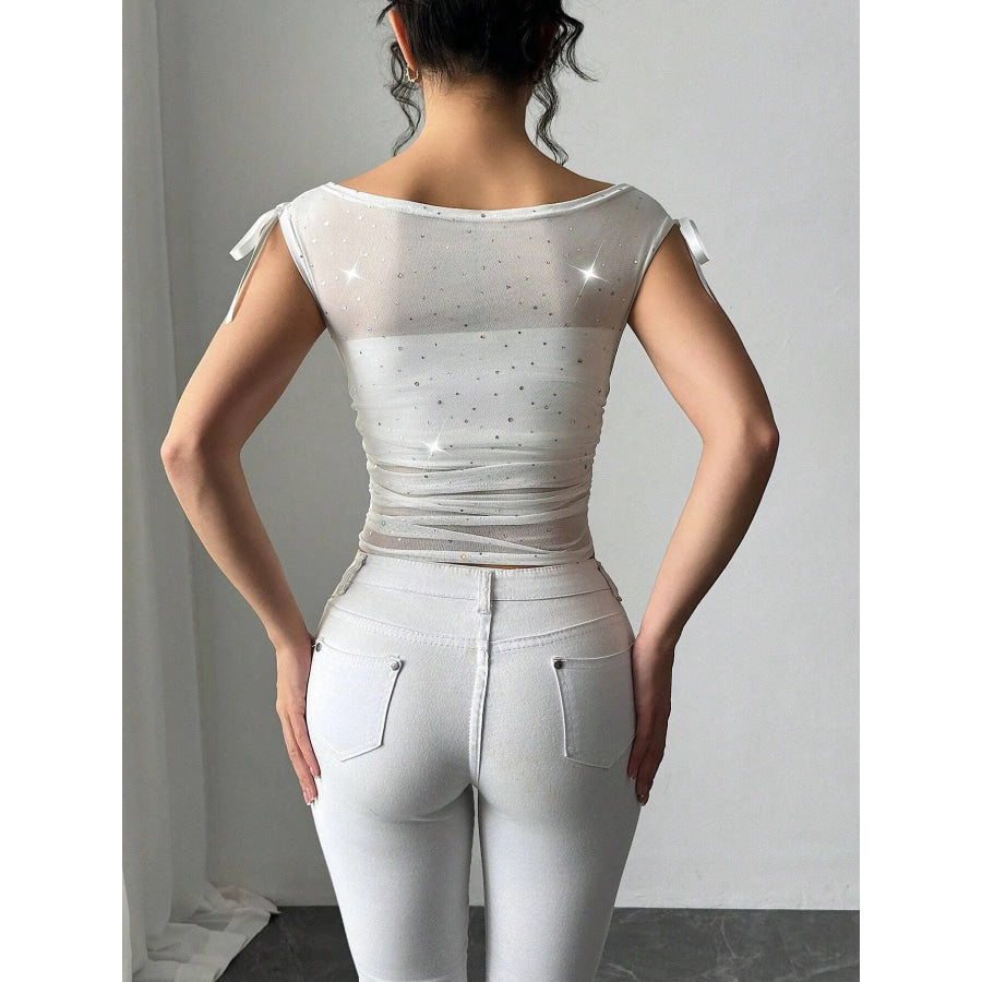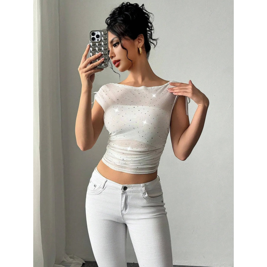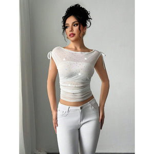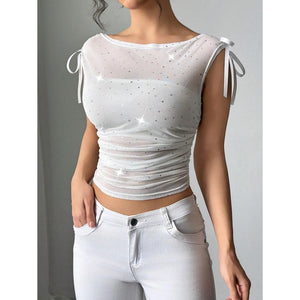Glitter Stars Sheer Mesh Ruched Crop Top