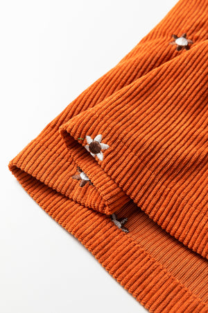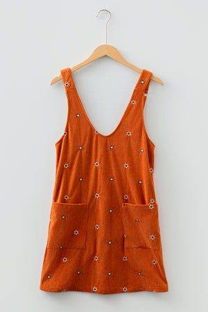 Gold Flame Flower Embroidered Corduroy Overall Mini Dress