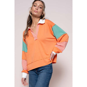 Hailey & Co Color Block Top with Striped Panel
