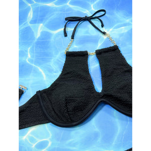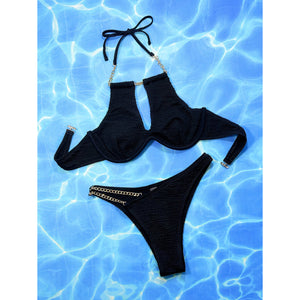 Halter Neck Chain Detail Two-Piece Bikini Set