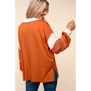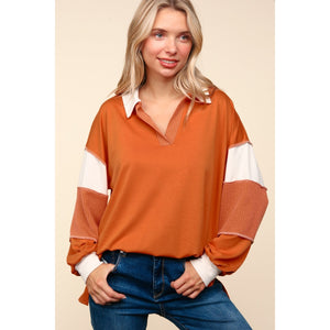 Haptics Color Block Exposed Seam Long Sleeve Top