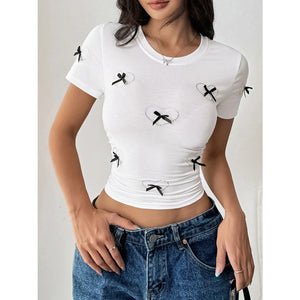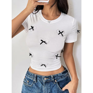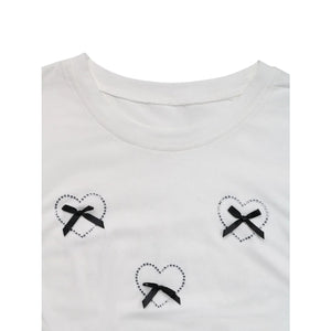 Heart Bow Round Neck Short Sleeve T-Shirt