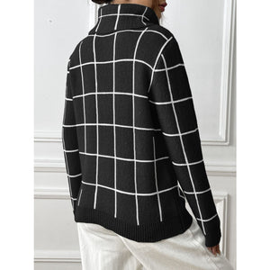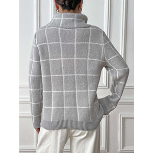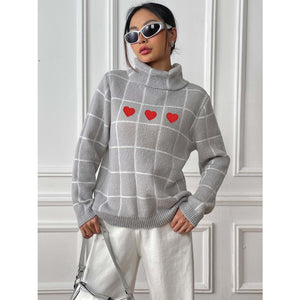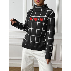 Heart Plaid Turtleneck Long Sleeve Sweater