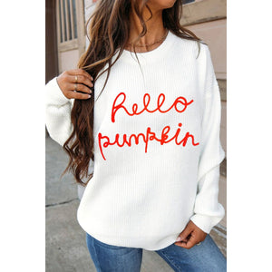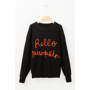 HELLO PUMPKIN Round Neck Long Sleeve Sweater