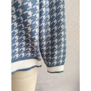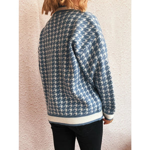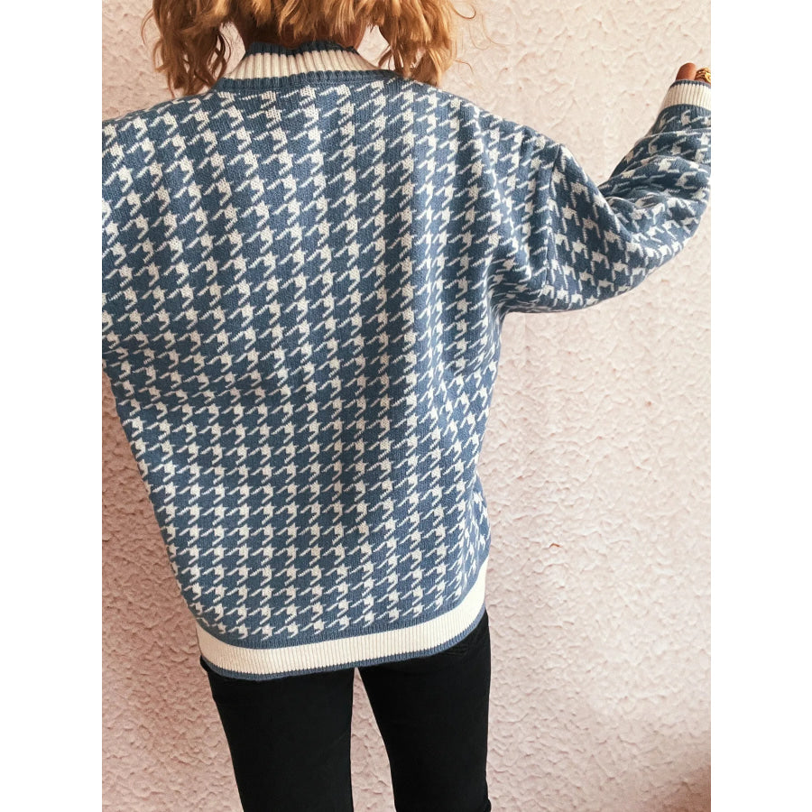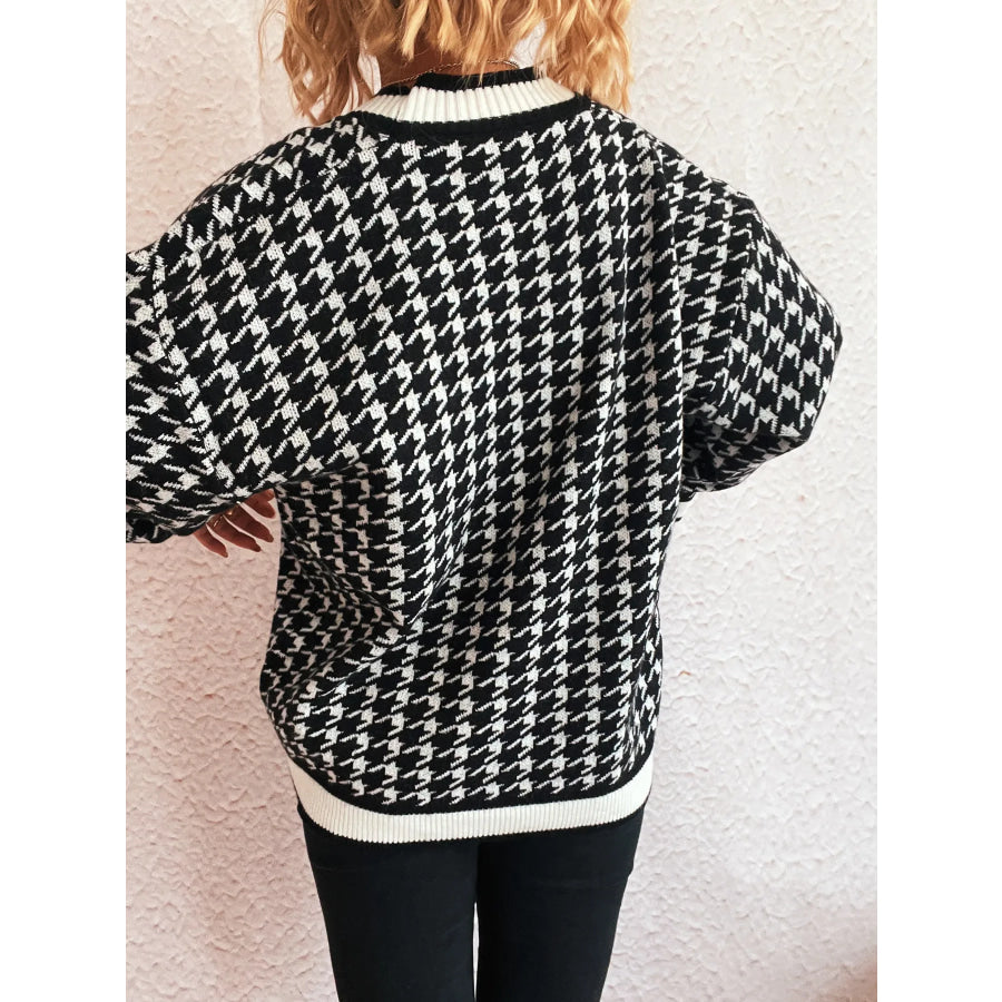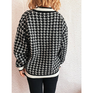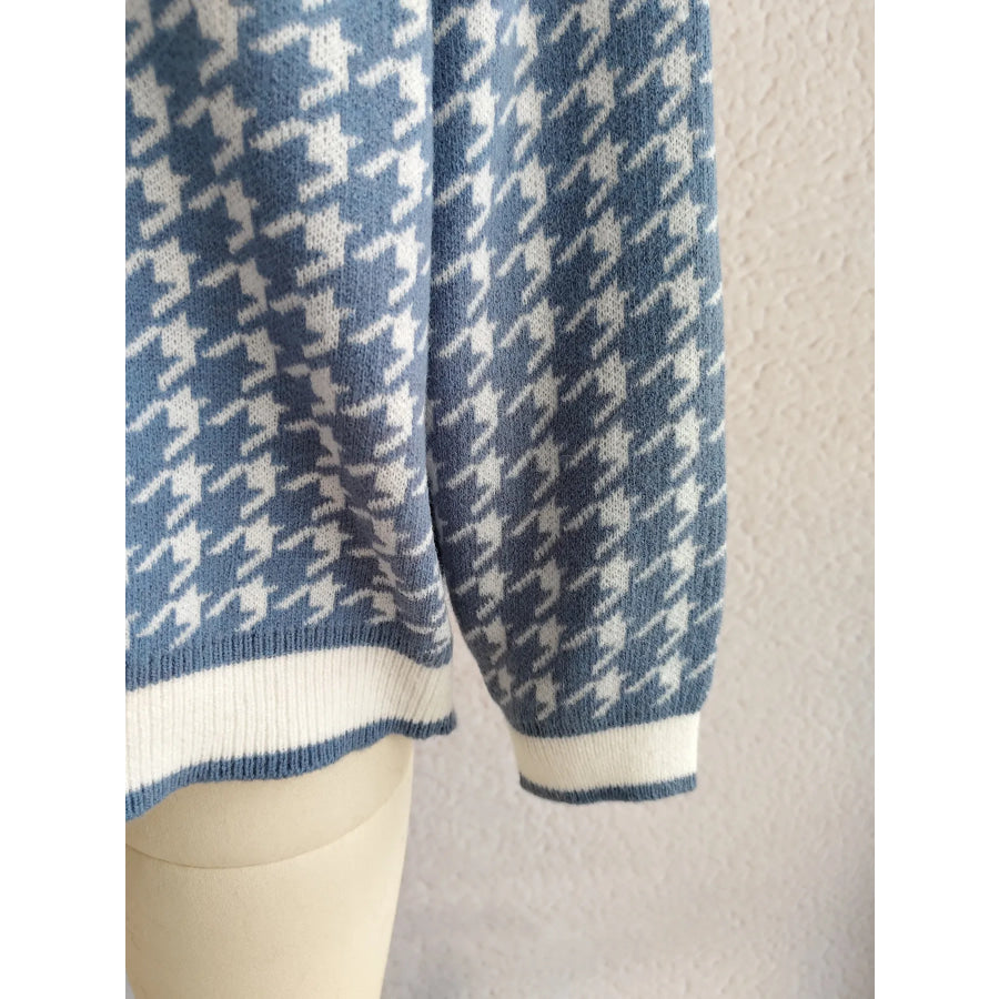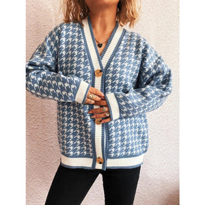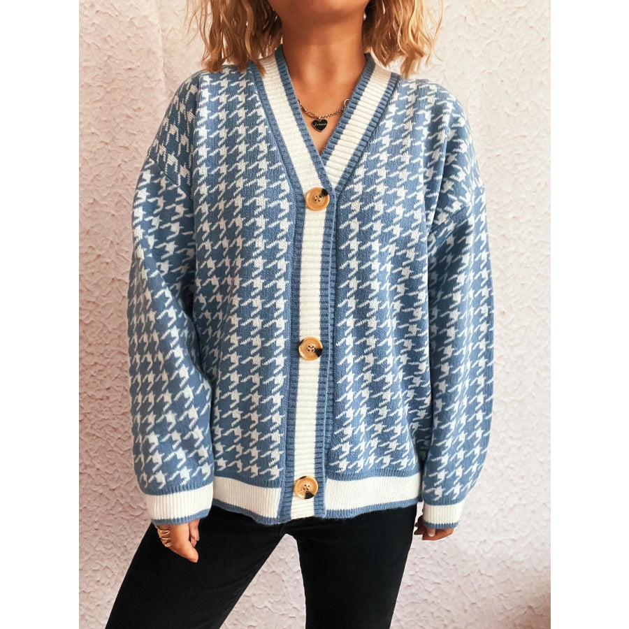Houndstooth Pattern V-Neck Button-Up Cardigan