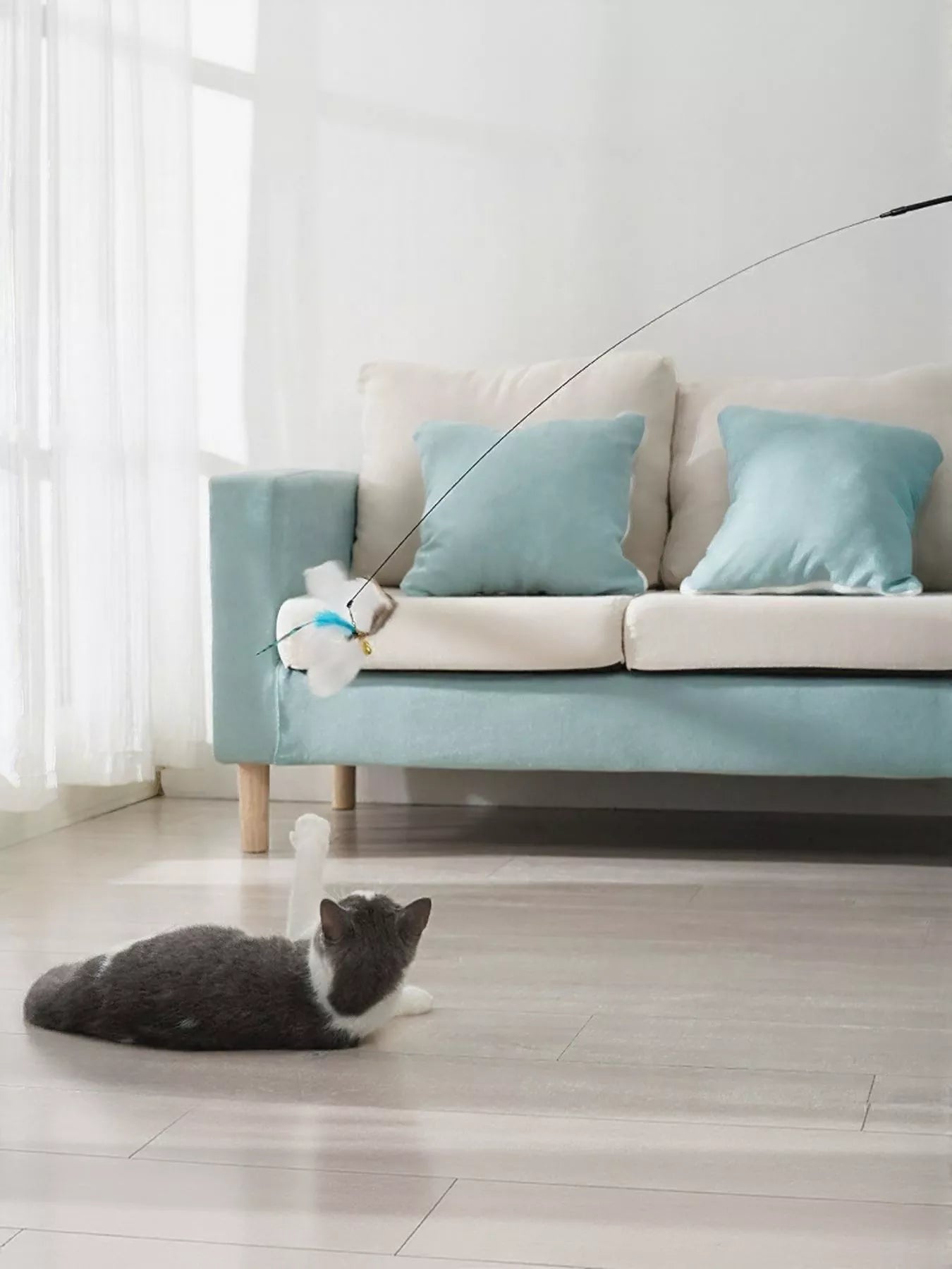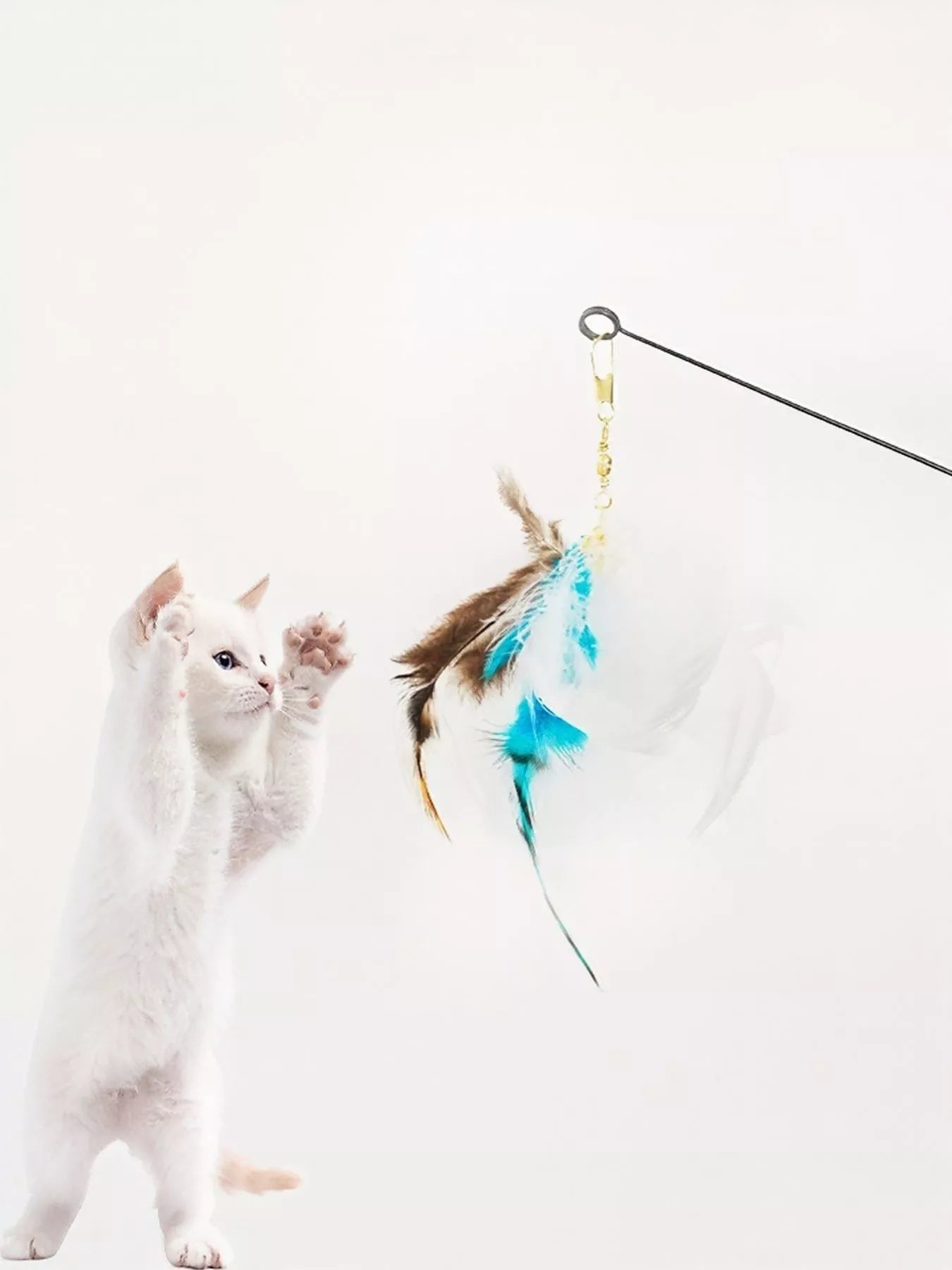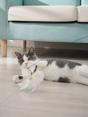 This Interactive Feather Teaser Cat Wand Toy falls under the Pet Training and Educational Toys category, designed to stimulate your cat's natural hunting instincts and provide hours of engaging play. The toy features a lightweight wand with a flexible string, attached to a cluster of soft, enticing feathers. A small bell is included to further capture your cat's attention with its playful sound. Made from durable and safe materials, this toy encourages exercise and mental stimulation, keeping your feline friend happy and healthy. Its interactive design allows you to bond with your cat while providing them with essential physical activity. Perfect for cats of all ages and sizes.