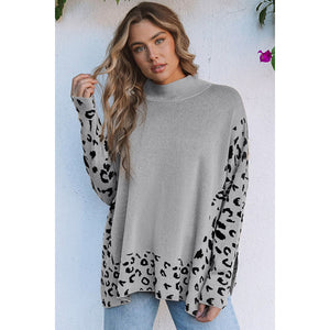 Khaki Leopard High Neck Side Slit Oversized Sweater