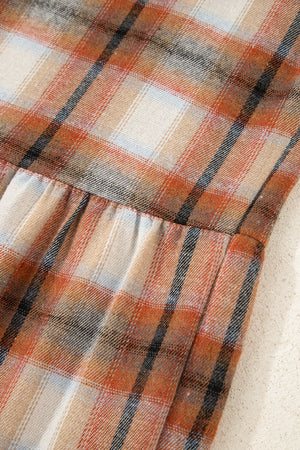 Khaki Plaid Color Block Patchwork Ruffle Hem Tunic Shirt Dress