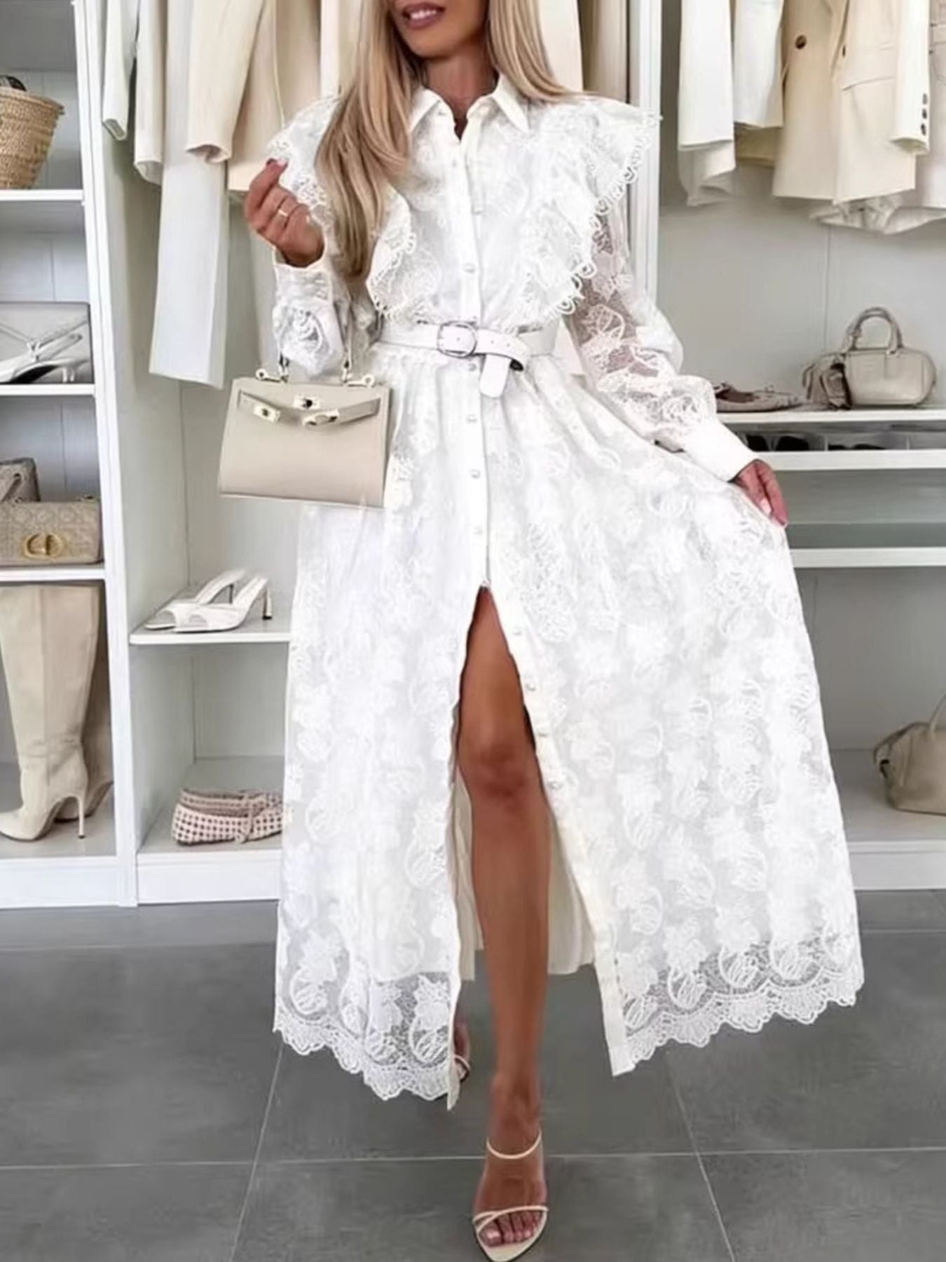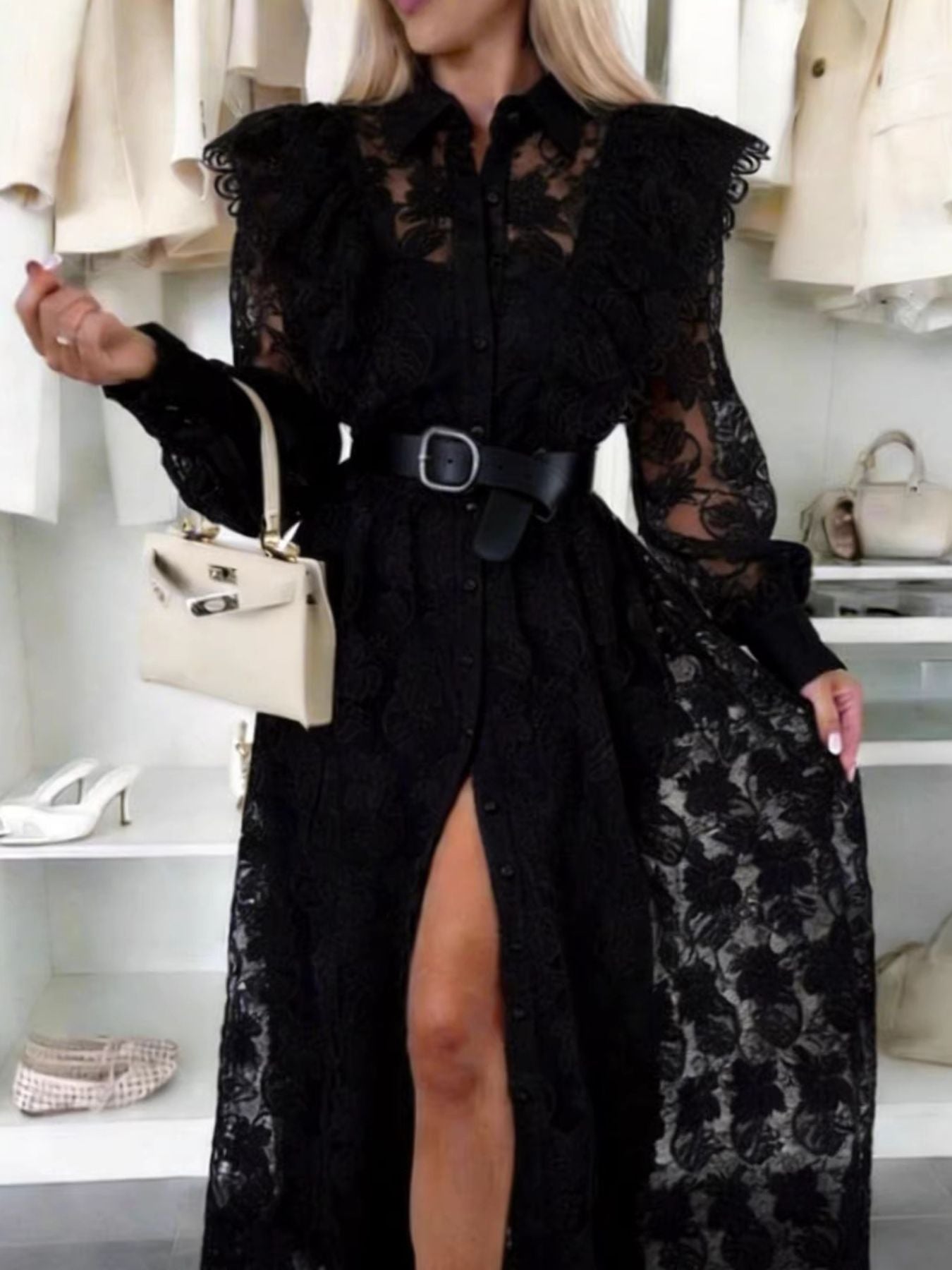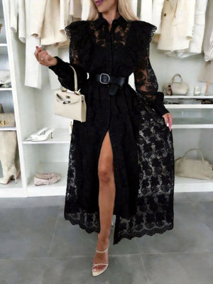 • Features:Lace,Buttoned,Slit,Belted