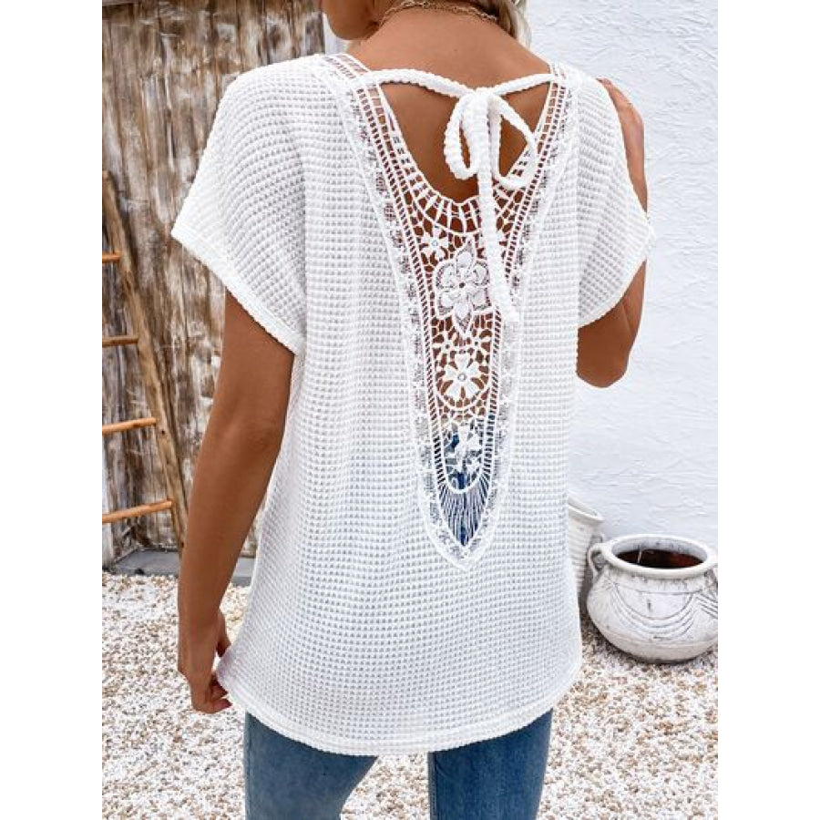 Lace Detail Round Neck Short Sleeve T-Shirt