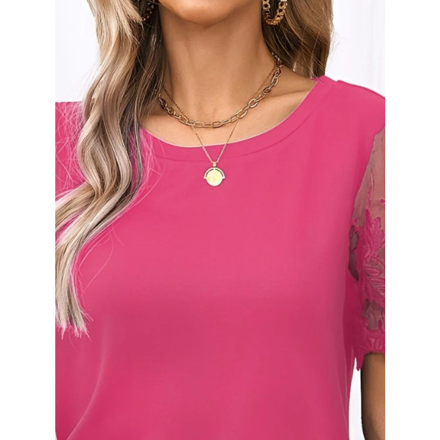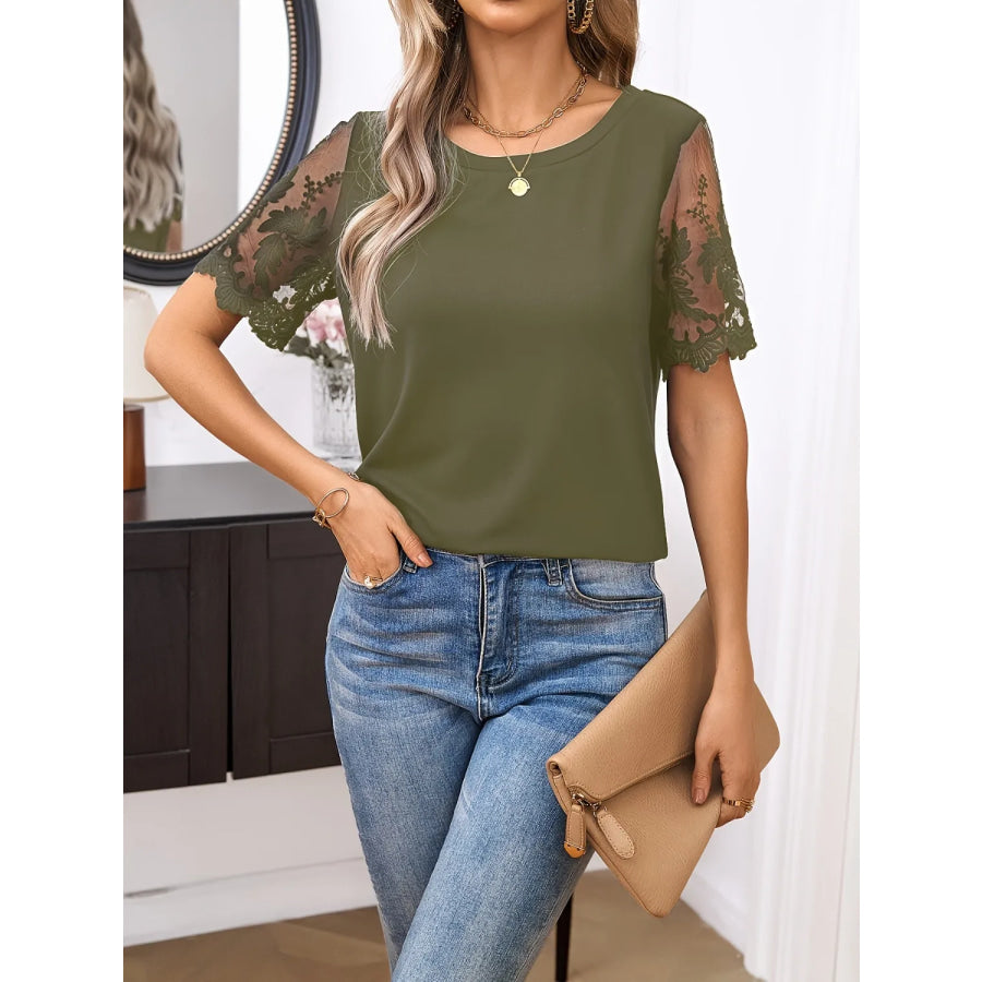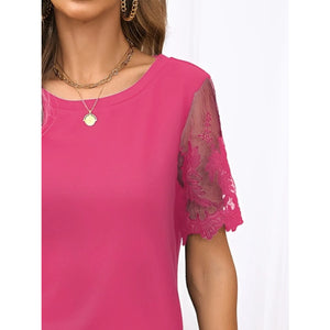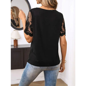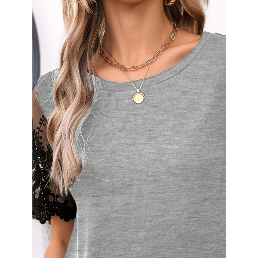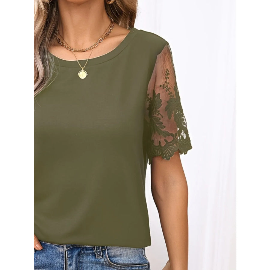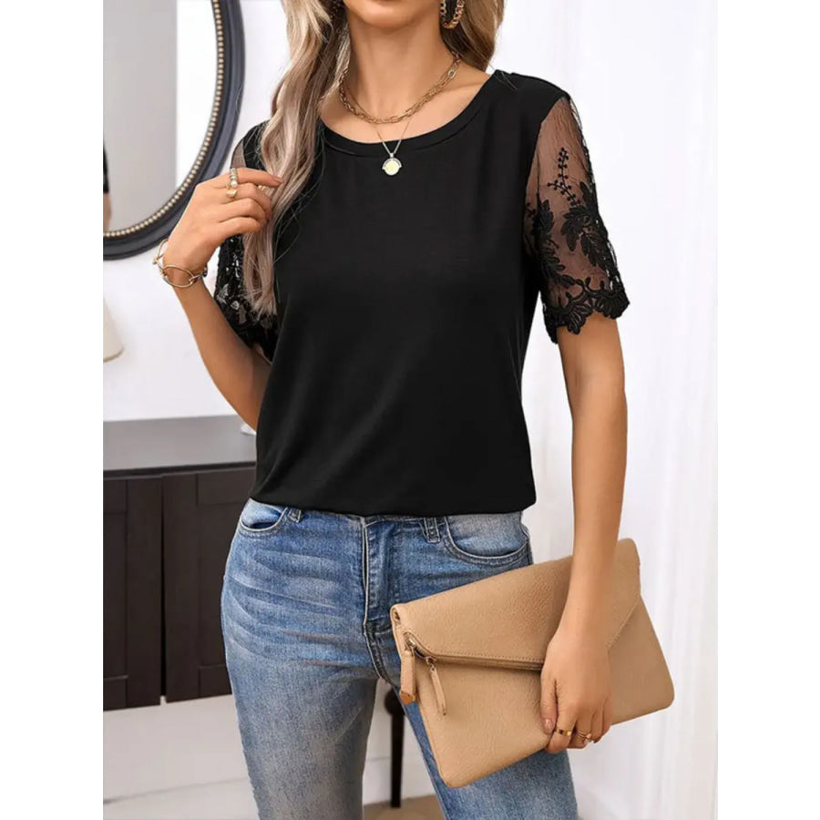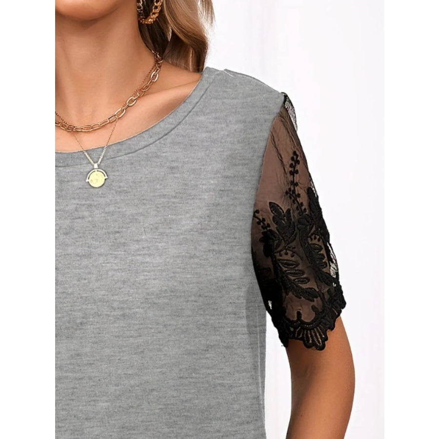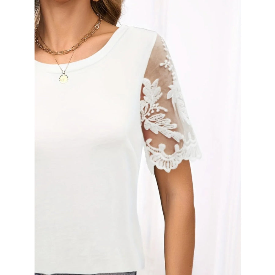 Lace Detail Round Neck Short Sleeve T-Shirt