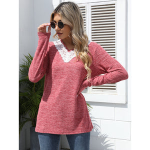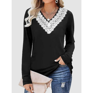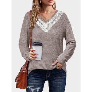 Lace Detail V-Neck Long Sleeve T-Shirt