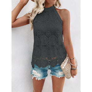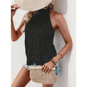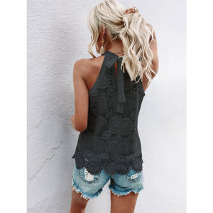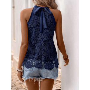 Lace Grecian Neck Tie Back Top