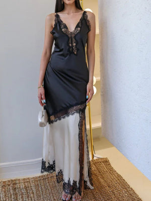 Lace Trimmed Two-Tone Slip Dress