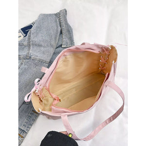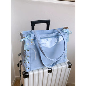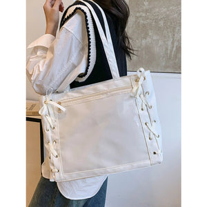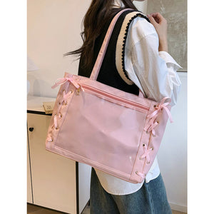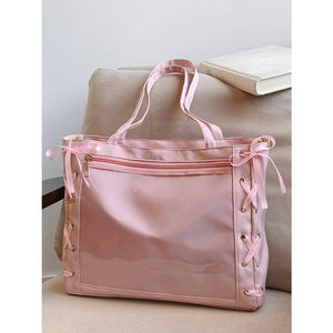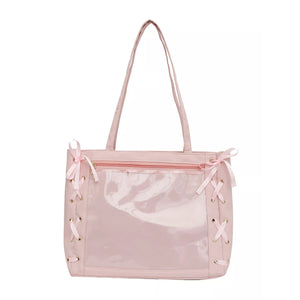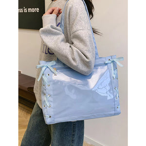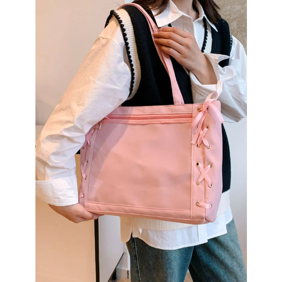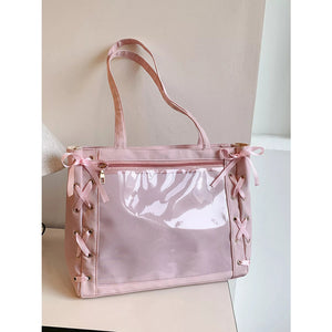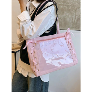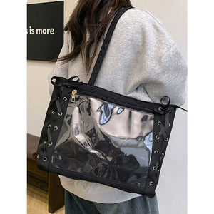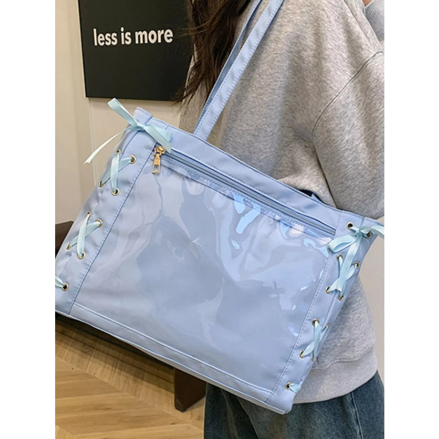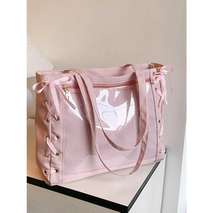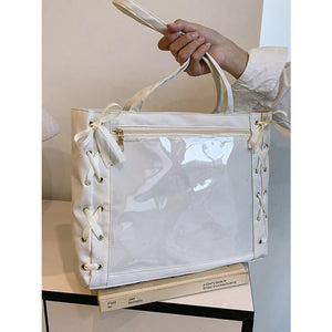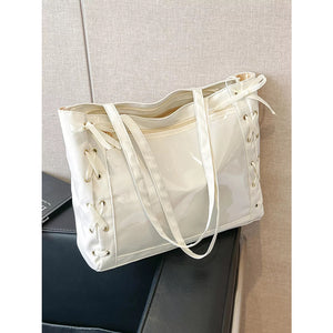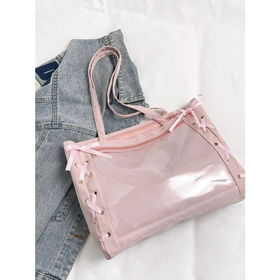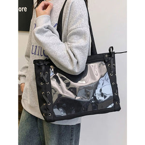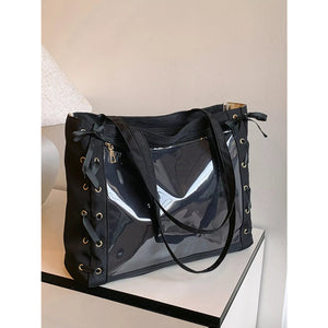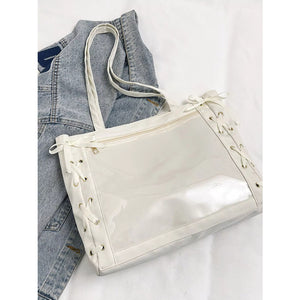 Lace-Up Trim Clear Panel Shoulder Bag