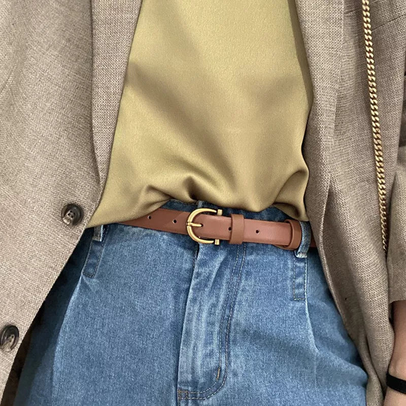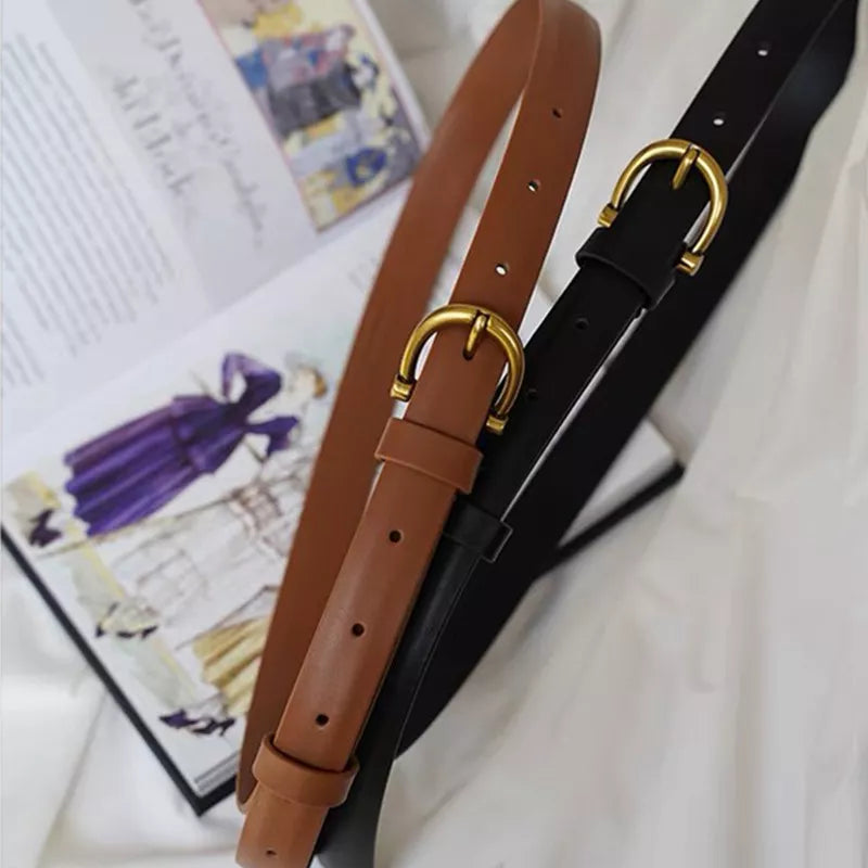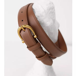 Leather Belt with Golden Buckle