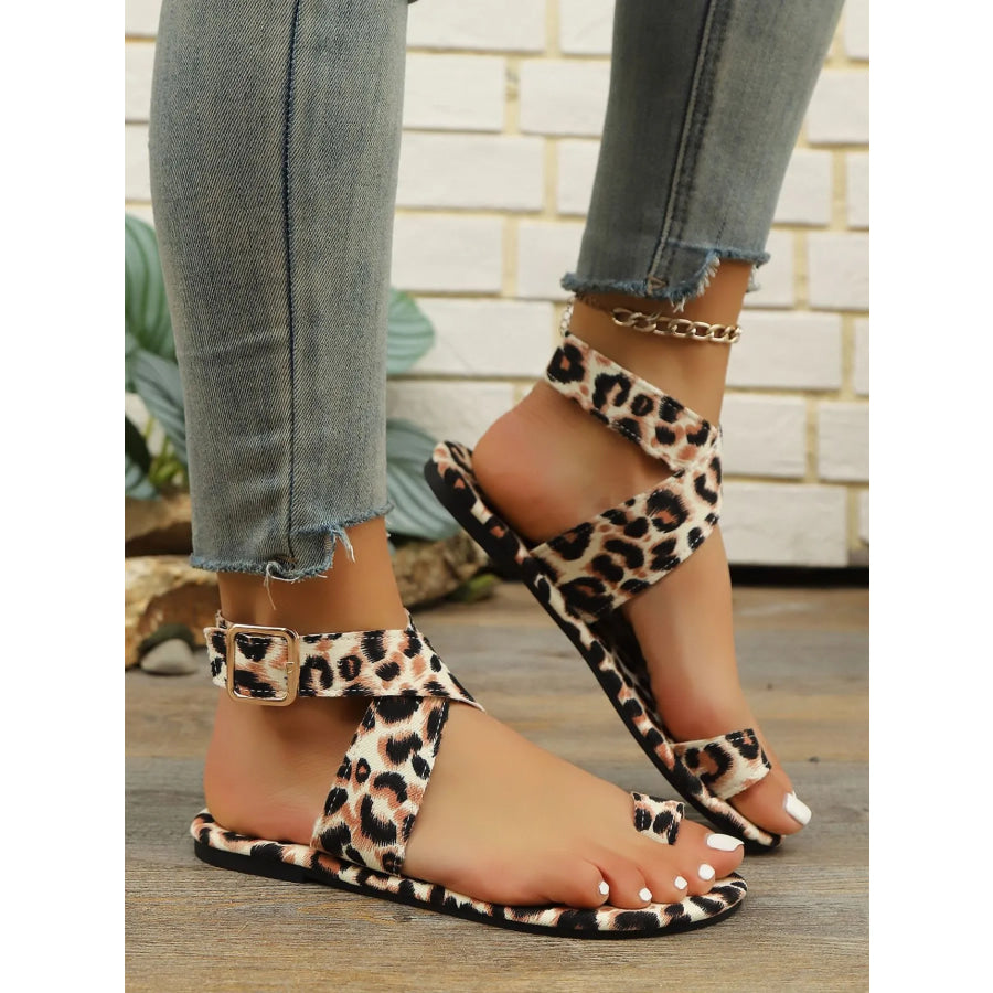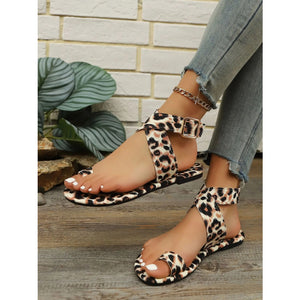 Leopard Print Ankle Strap Flat Sandals