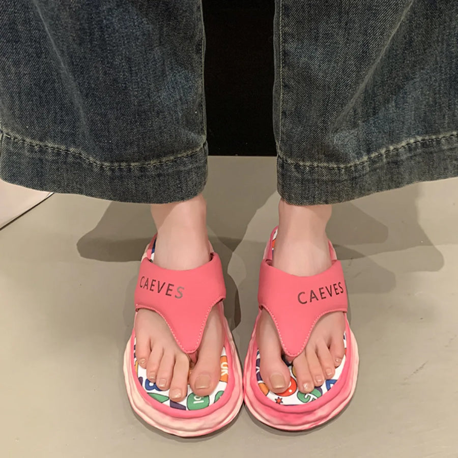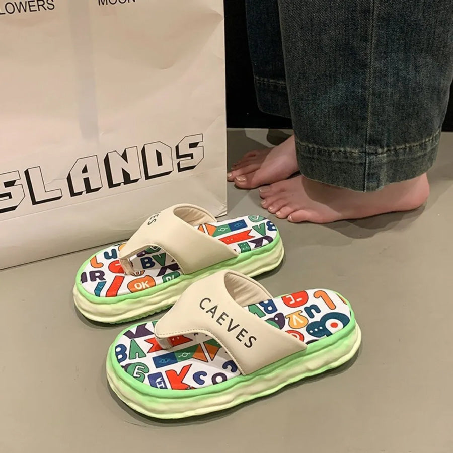 Letter Print Toe Post Sandals