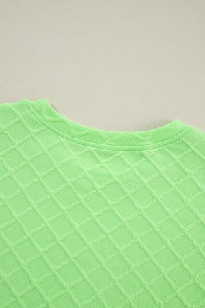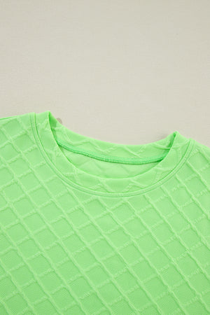 Light Green Checkered Textured Tee and Drawstring Shorts