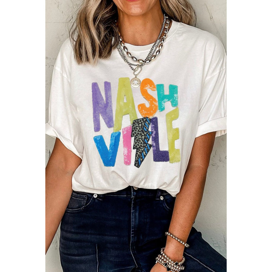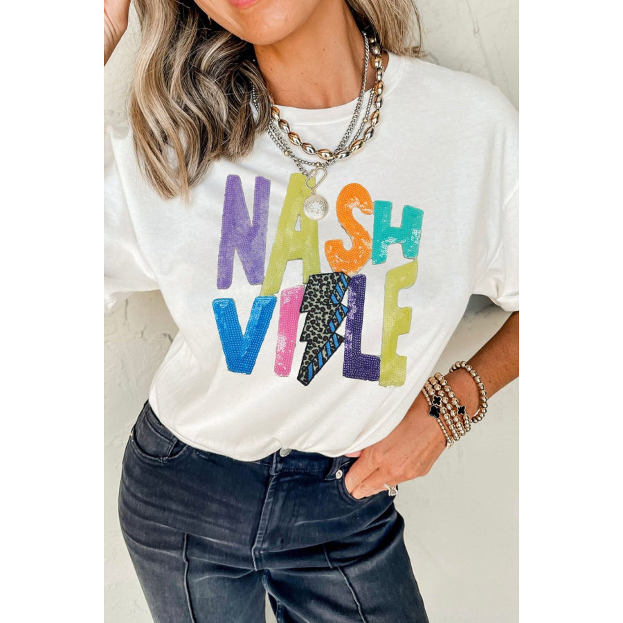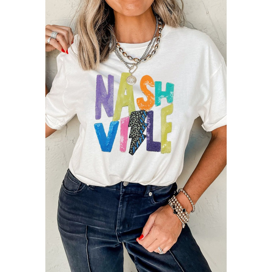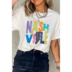 Lightening NASHVILLE Sequin Round Neck T-Shirt
