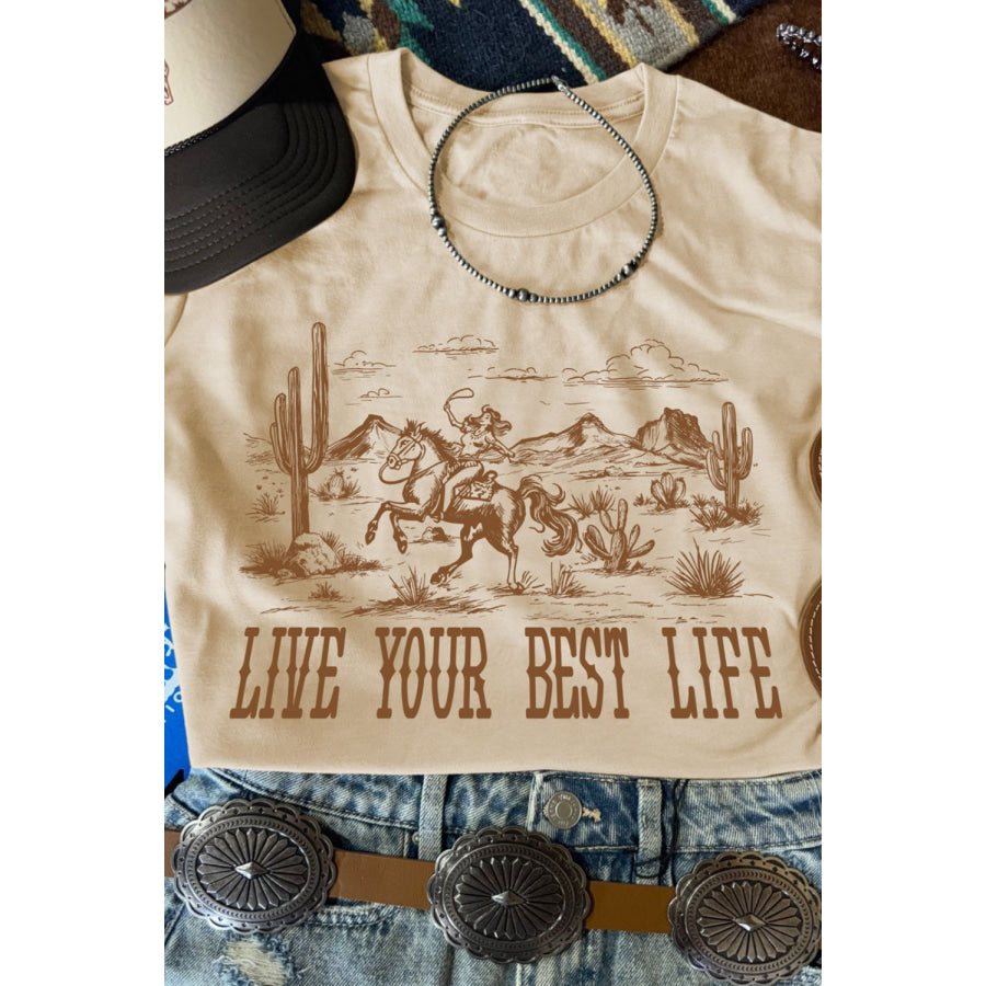 LIVE YOUR BEST LIFE Western Graphic Short Sleeve T-Shirt
