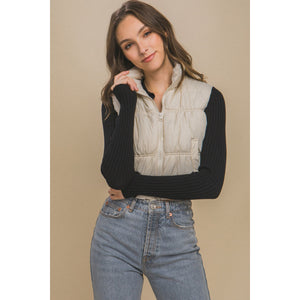 Turtleneck Cropped Puffer Vest is a trendy and versatile addition to your winter wardrobe. With its combination of a warm turtleneck and cropped length, it provides both style and functionality, keeping you cozy and chic in colder temperatures. Whether you layer it over a sweater or wear it on its own, this puffer vest is a fashionable choice for any outfit.