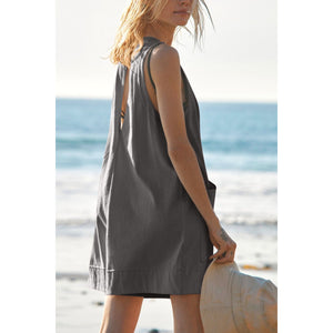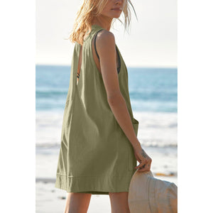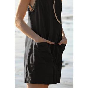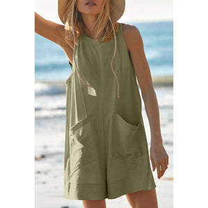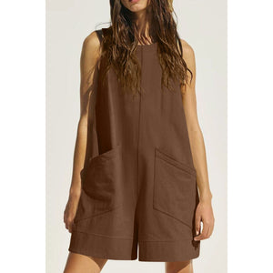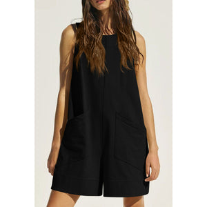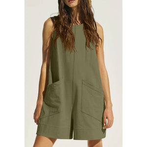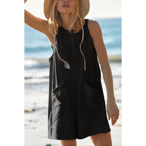 Lovelet Round Neck Sleeveless Romper with Pockets