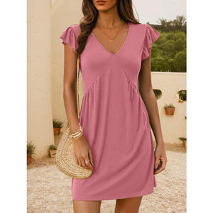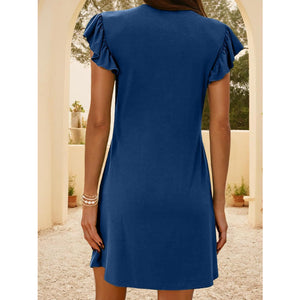 Lovelet V-Neck Ruffled Cap Sleeve Mini Dress