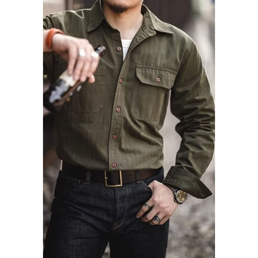 Men's Button Down Long Sleeve Shirt with Chest Pockets