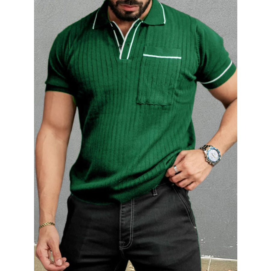 Men's Contrast Collared Neck Ribbed Knit Polo
