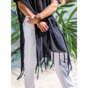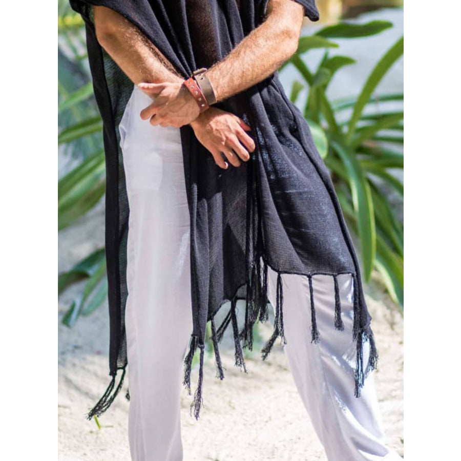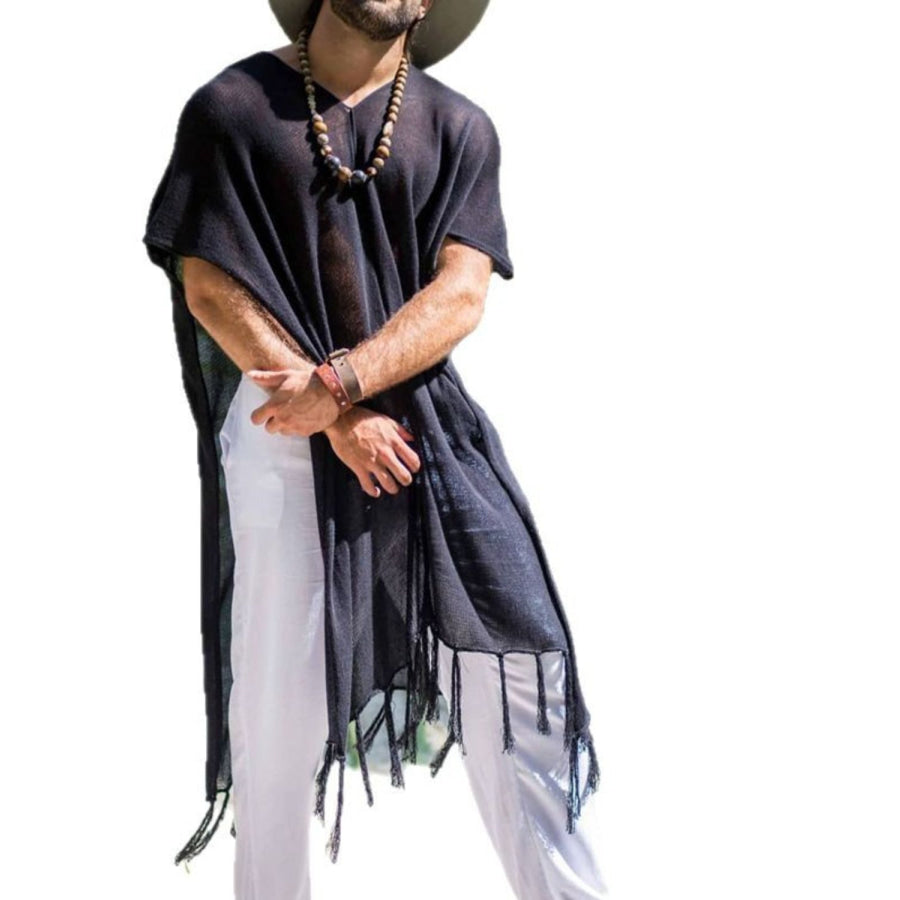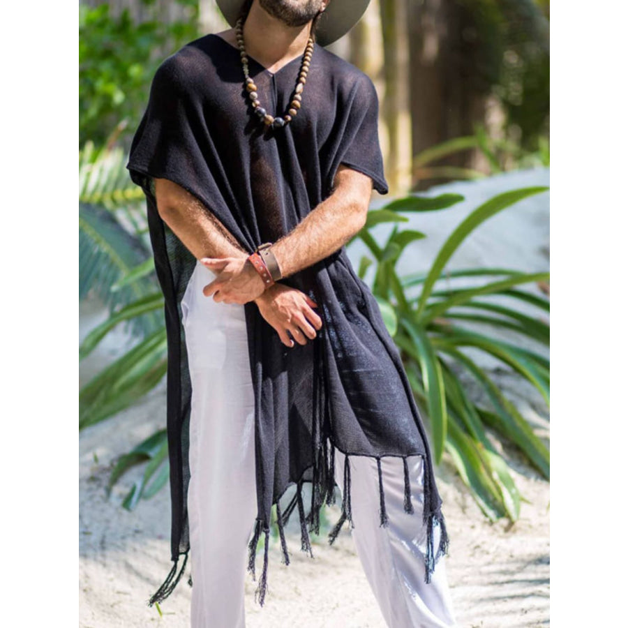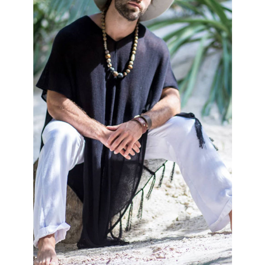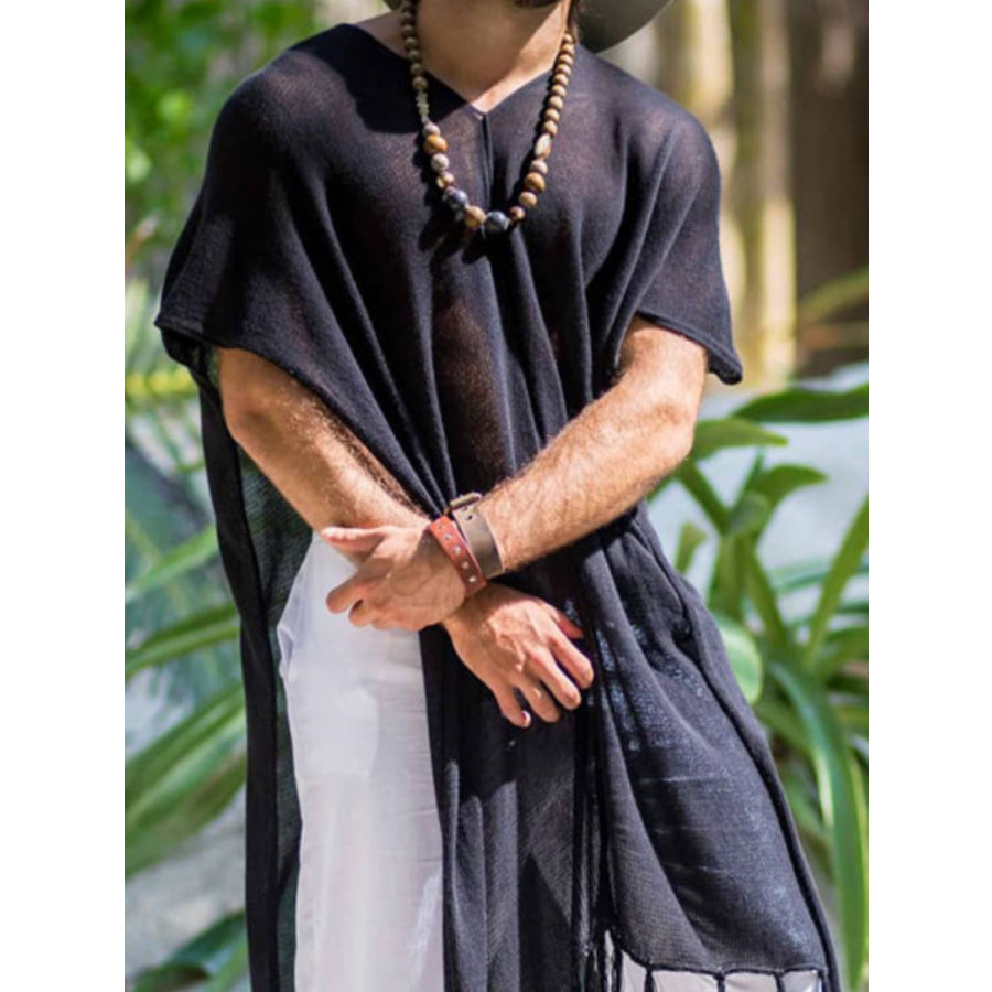 Men's Full Size Fringe V-Neck Half Sleeve Cover Up Plus Size