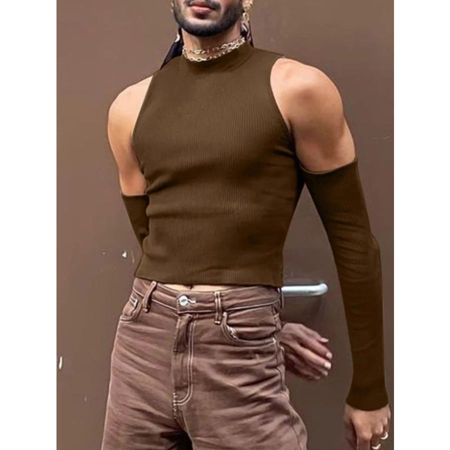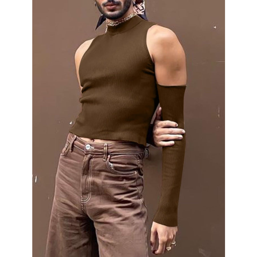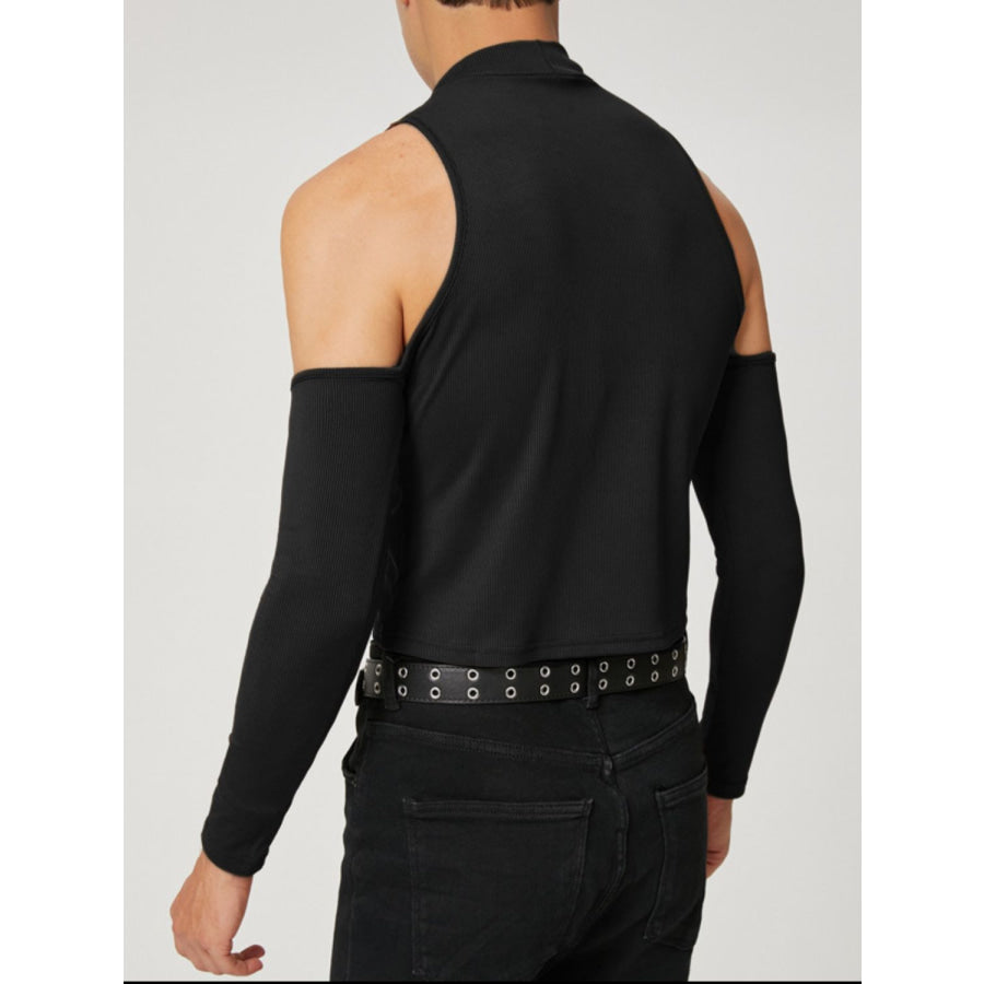 Men's Full Size Mock Neck Cold Shoulder T-Shirt Plus Size