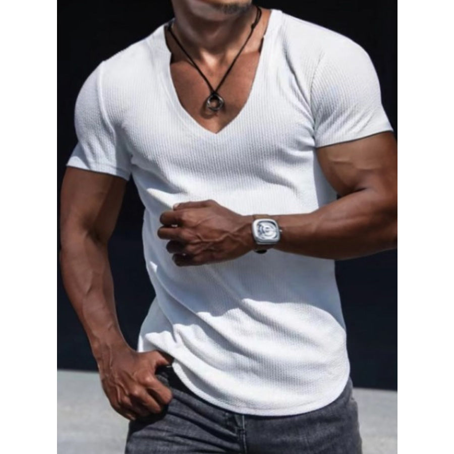 Men's Full Size Notched Short Sleeve T-Shirt Plus Size