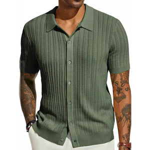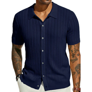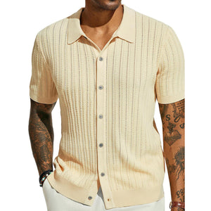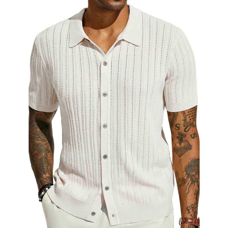 Men's Full Size Openwork Button Down Collared Neck Shirt Plus Size