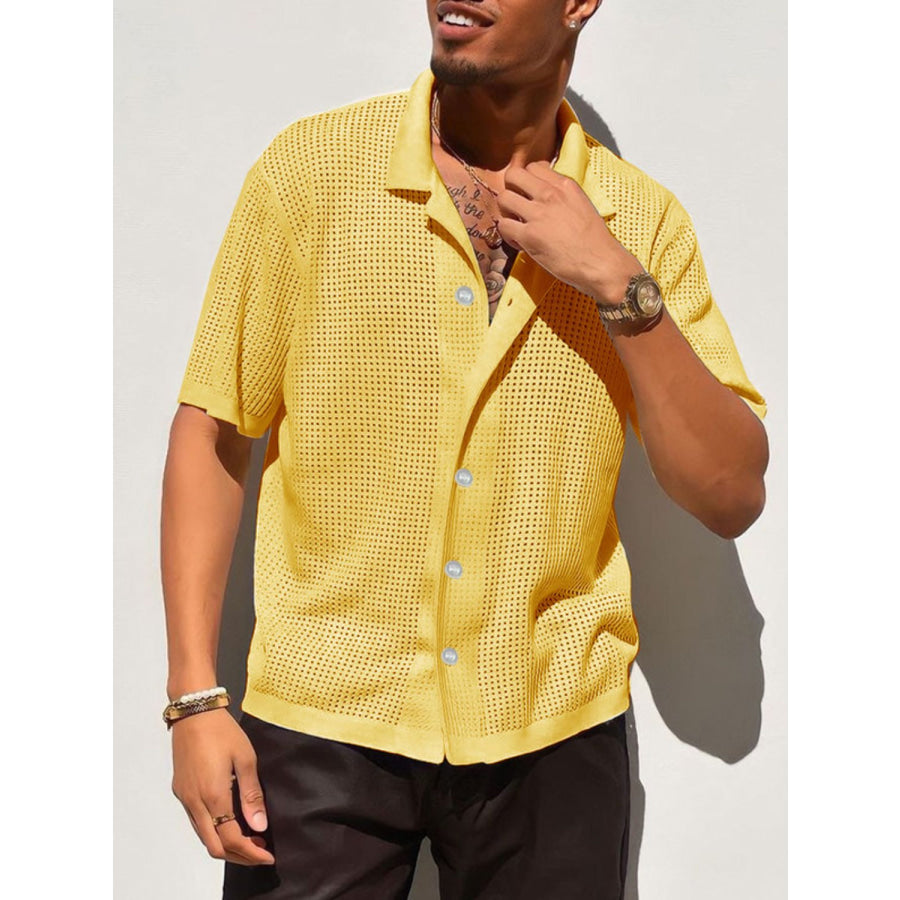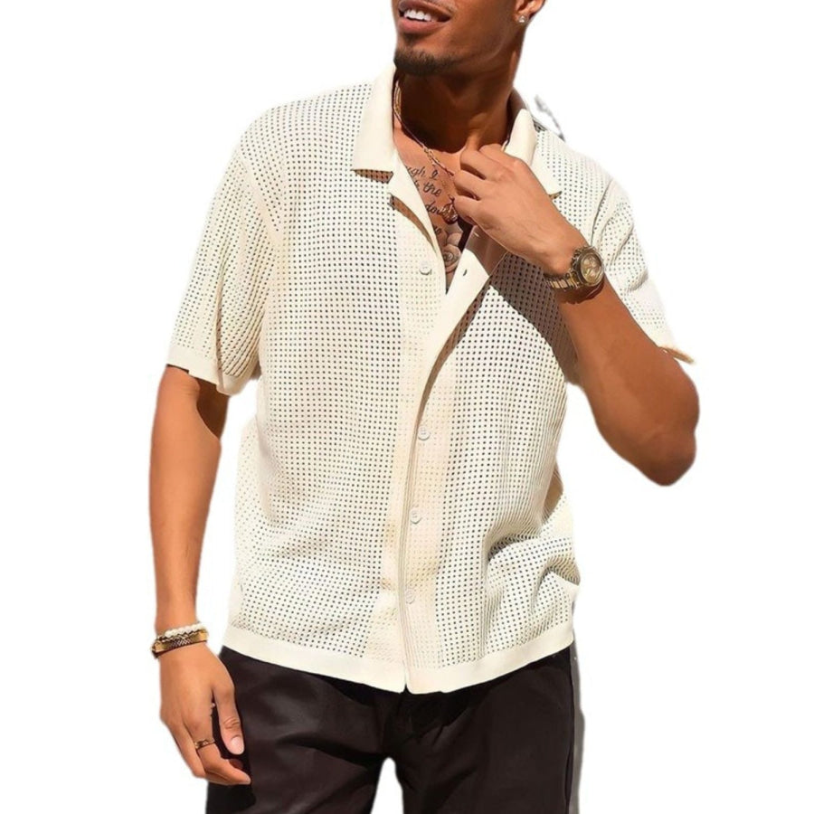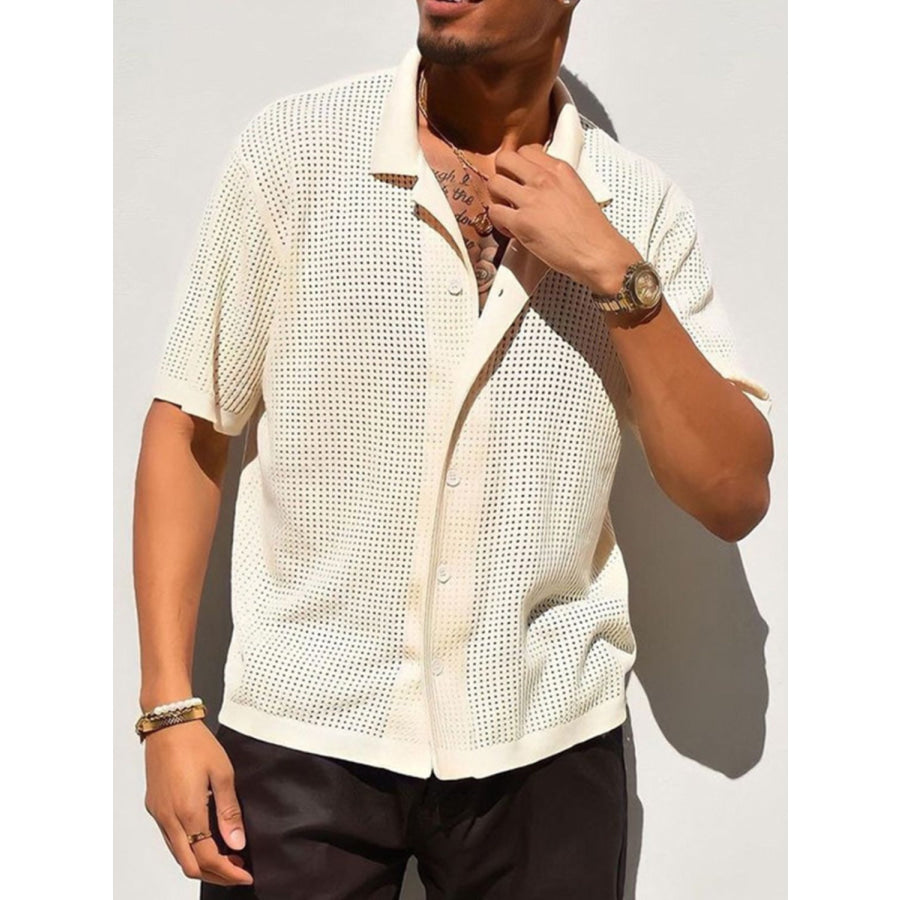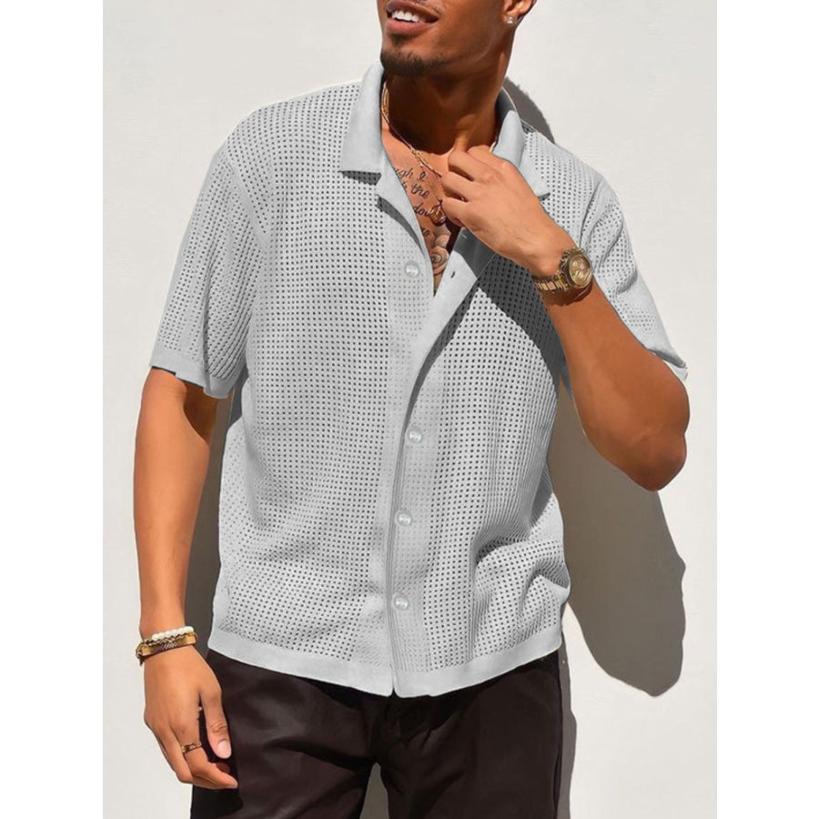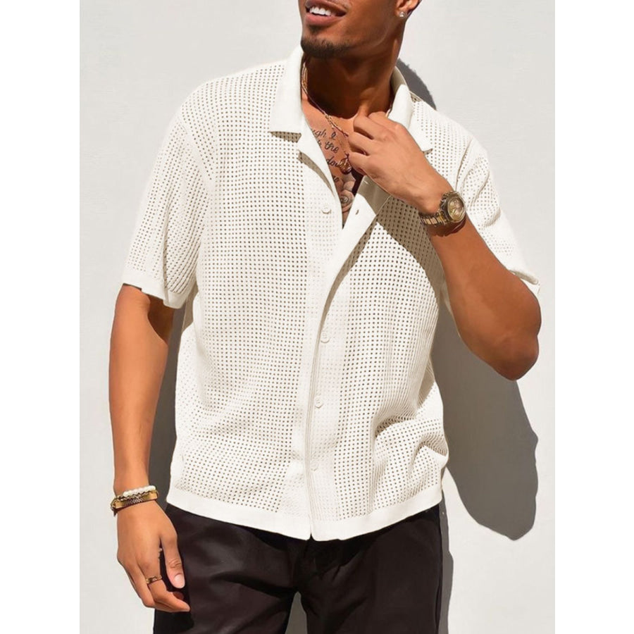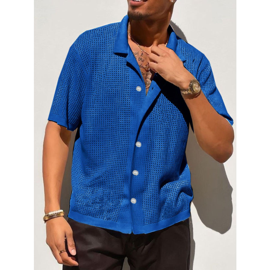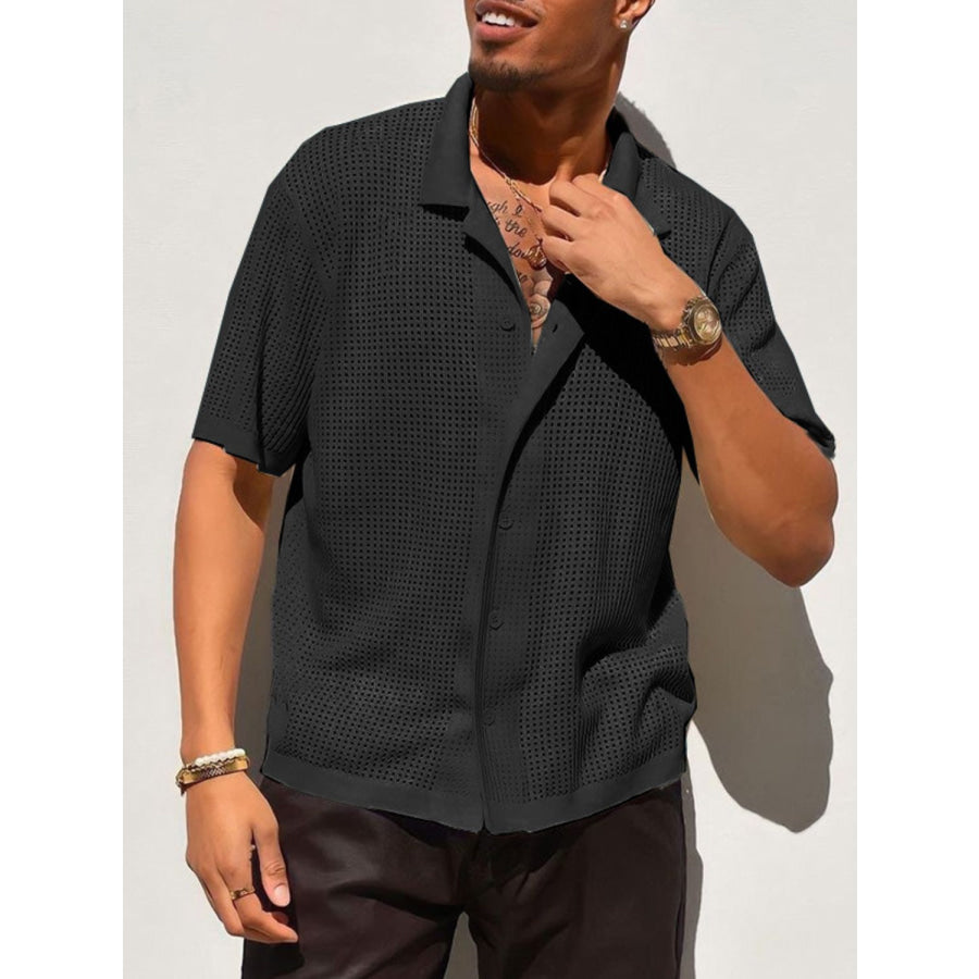 Men's Full Size Openwork Button Down Collared Neck Shirt Plus Size