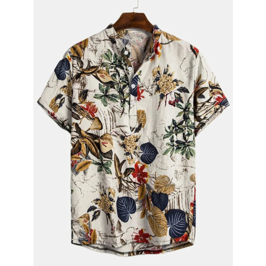 Men's Full Size Printed Button Up Short Sleeve Shirt Plus Size