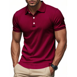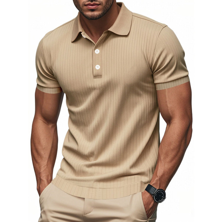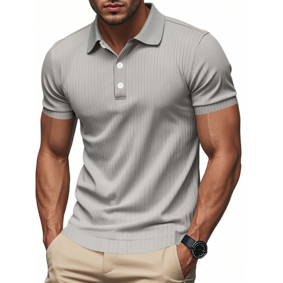 Men's Full Size Ribbed Short Sleeve Polo Plus Size