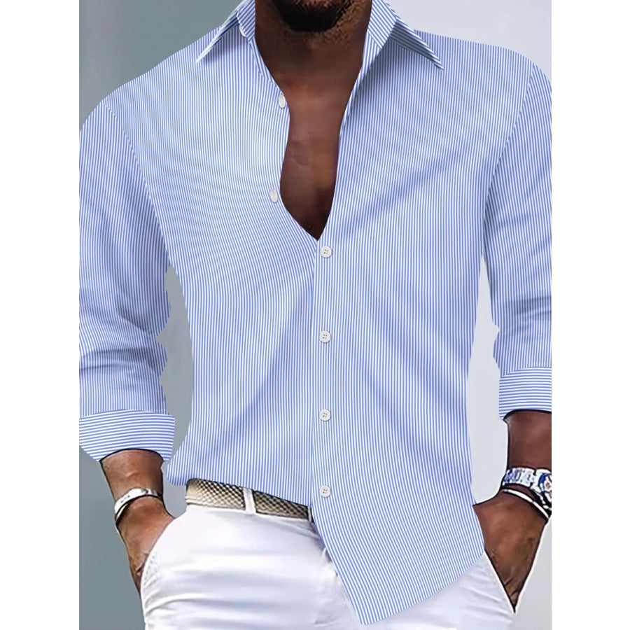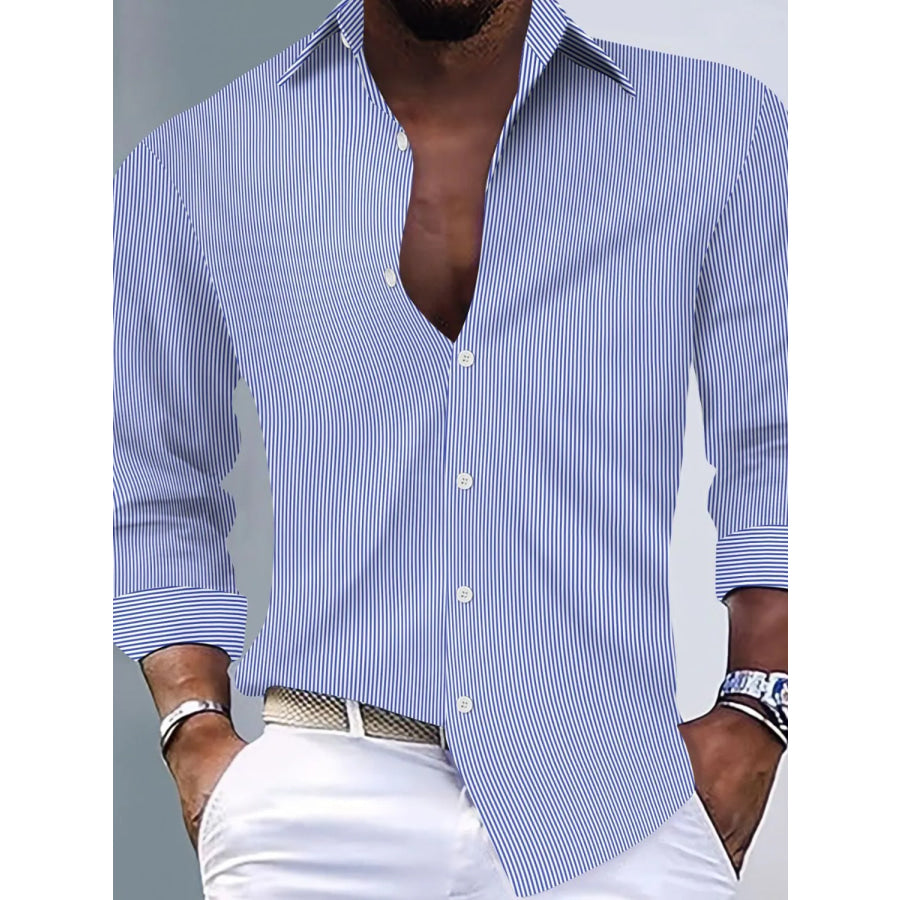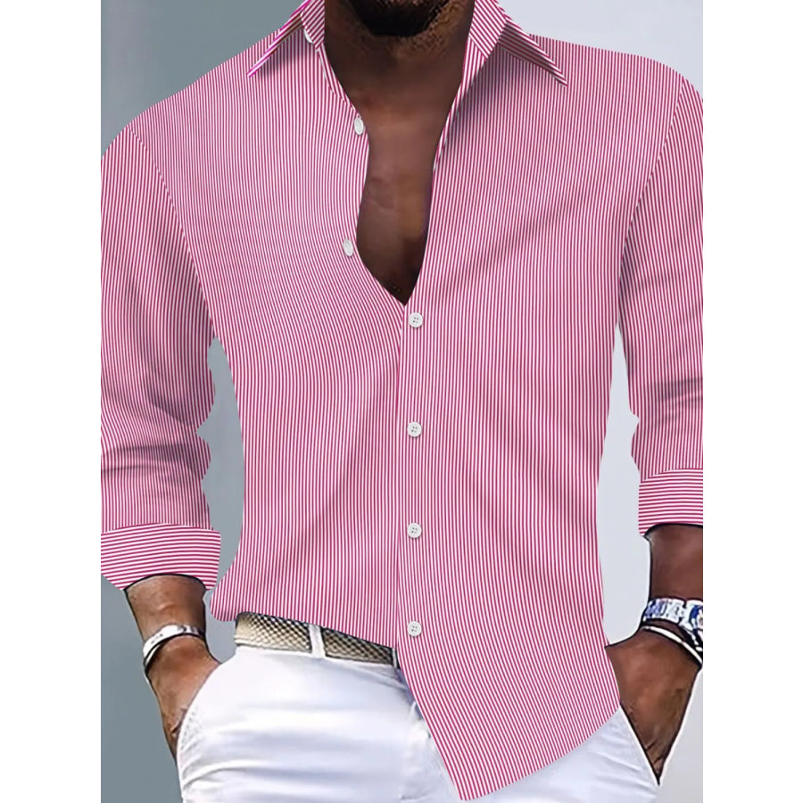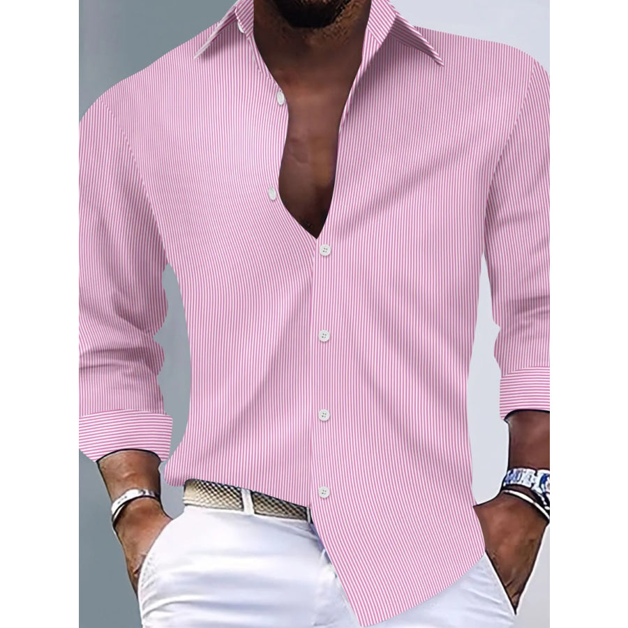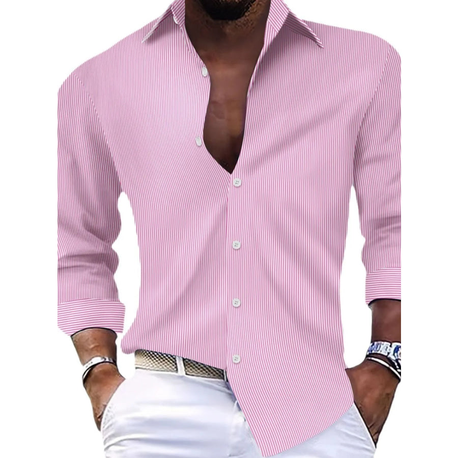 Men's Full Size Striped Button Up Long Sleeve Shirt Plus Size