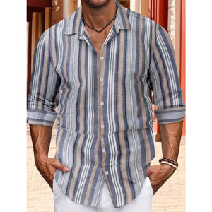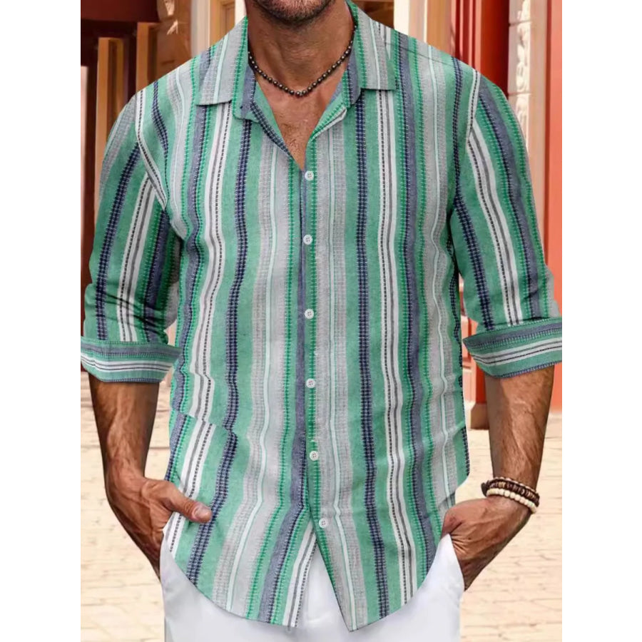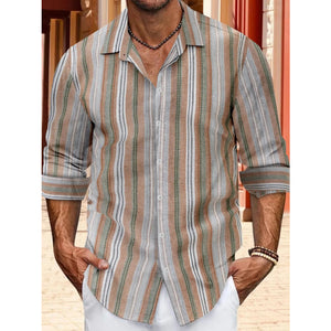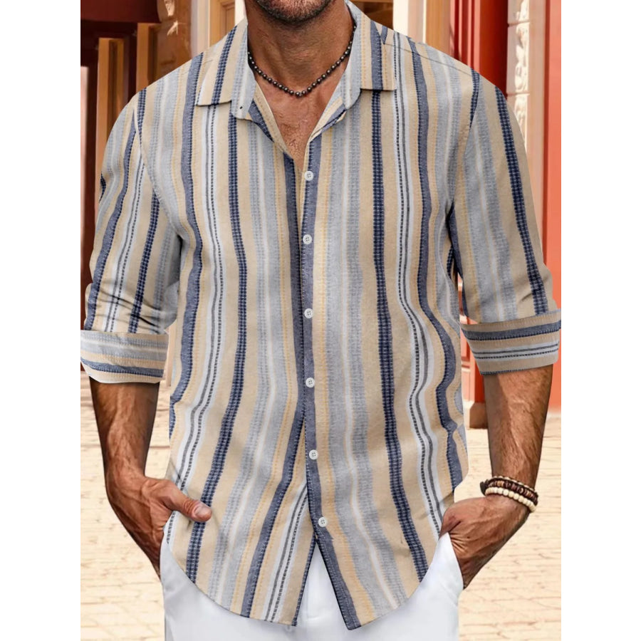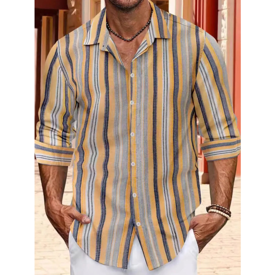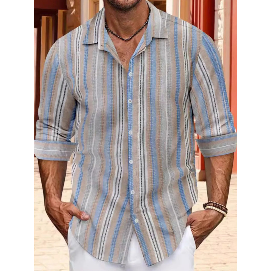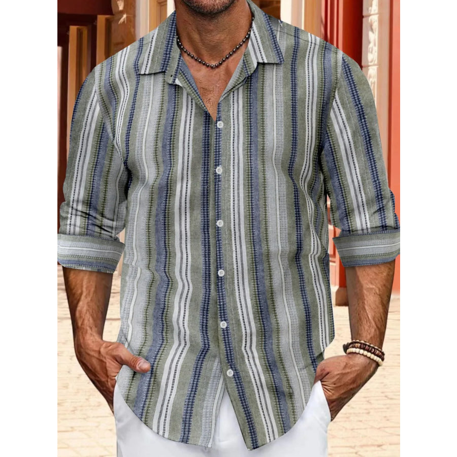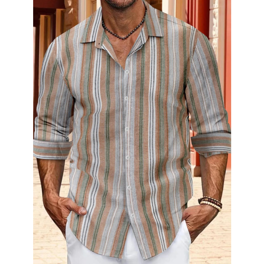 Men's Full Size Striped Button Up Long Sleeve Shirt Plus Size