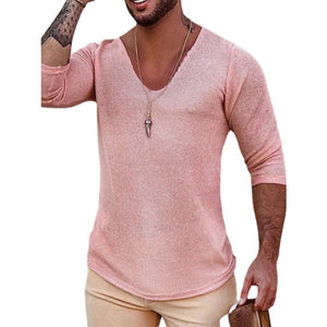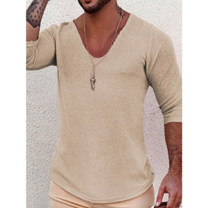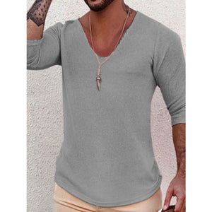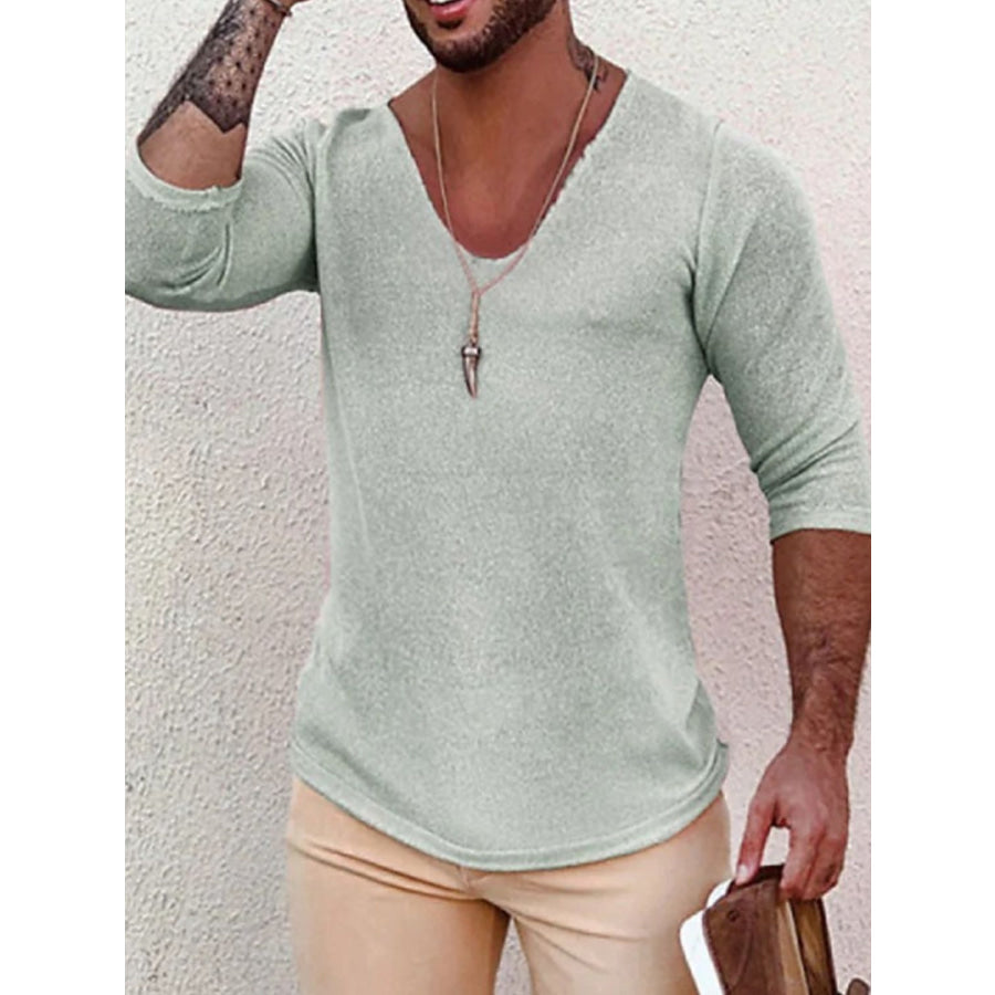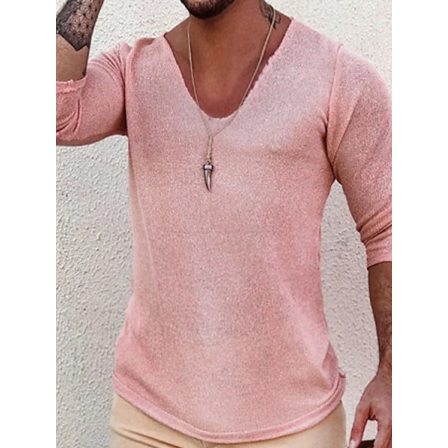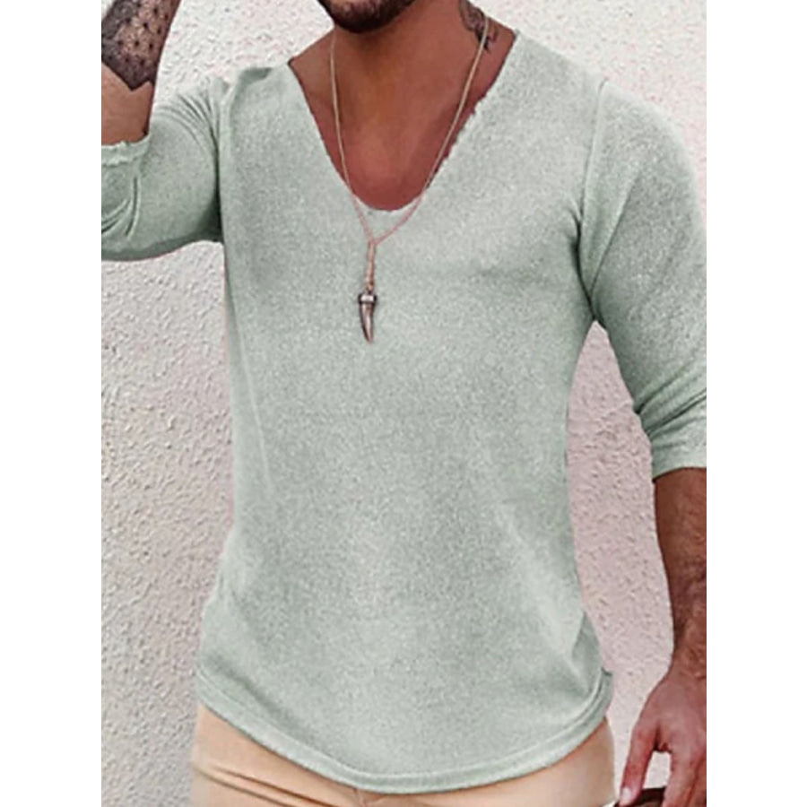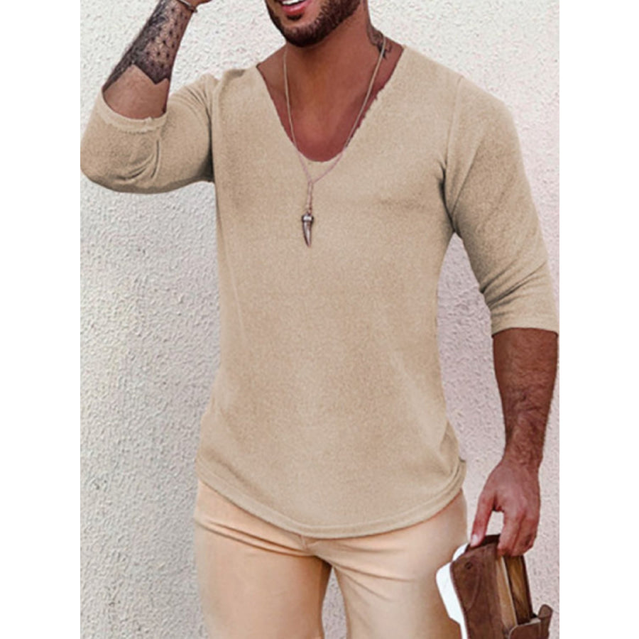 Men's Full Size V-Neck Long Sleeve T-Shirt Plus Size