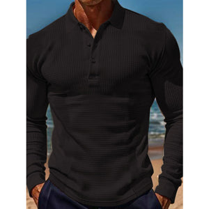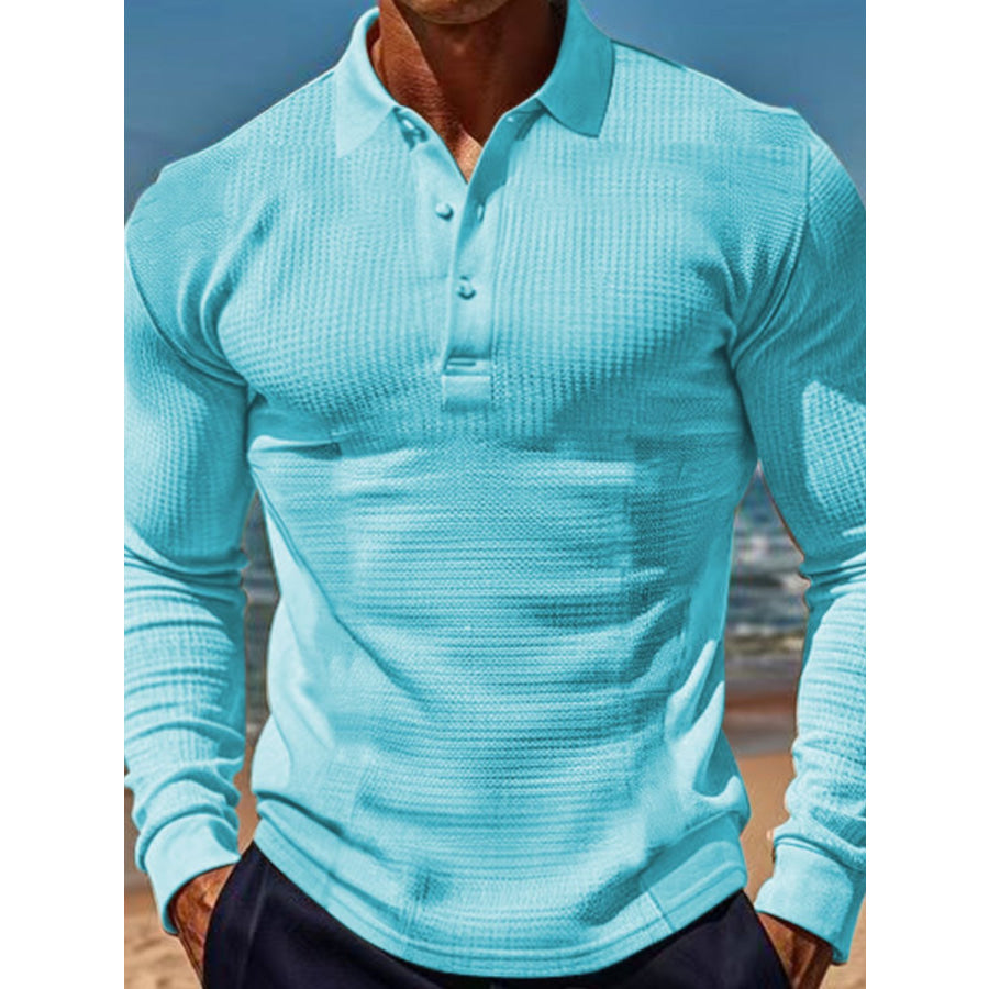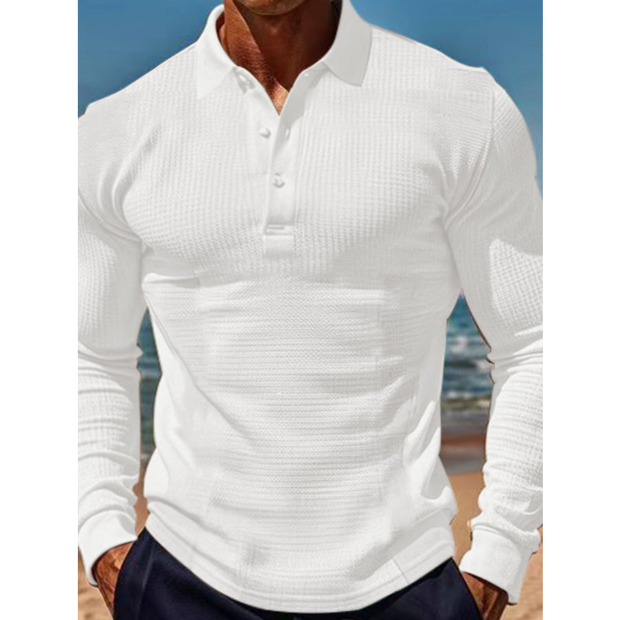 Men's Full Size Waffle-Knit Quarter Button Polo Plus Size
