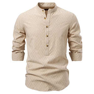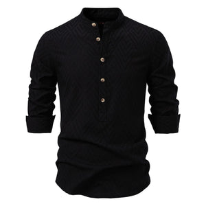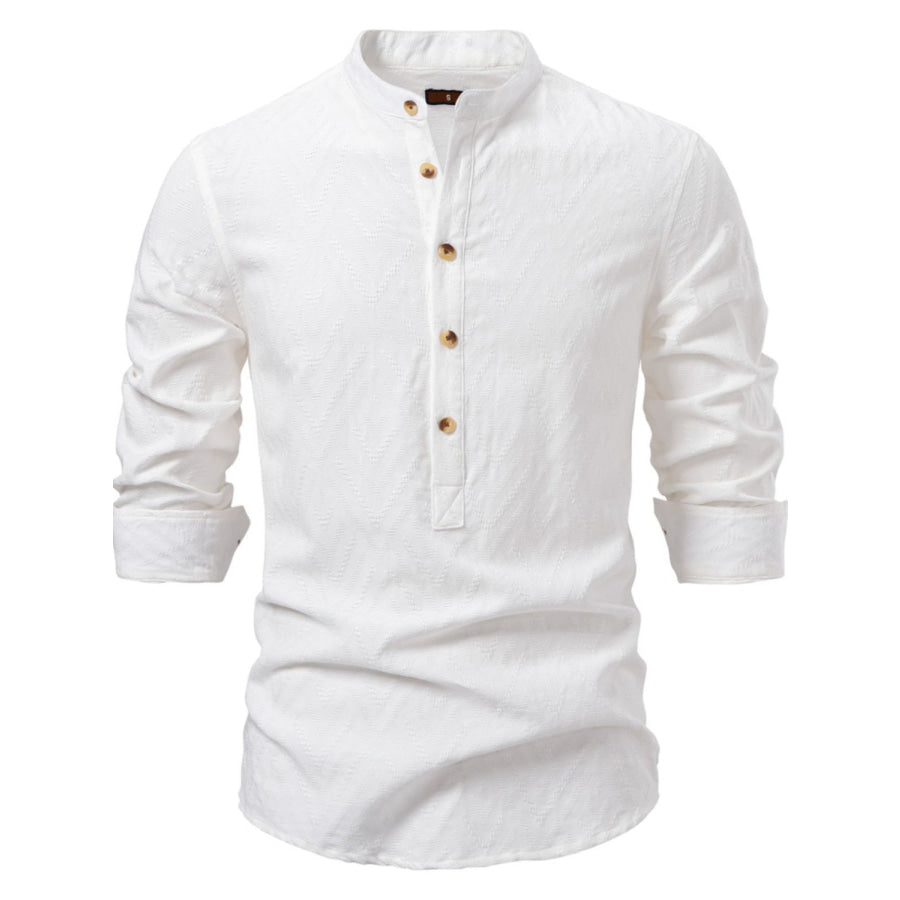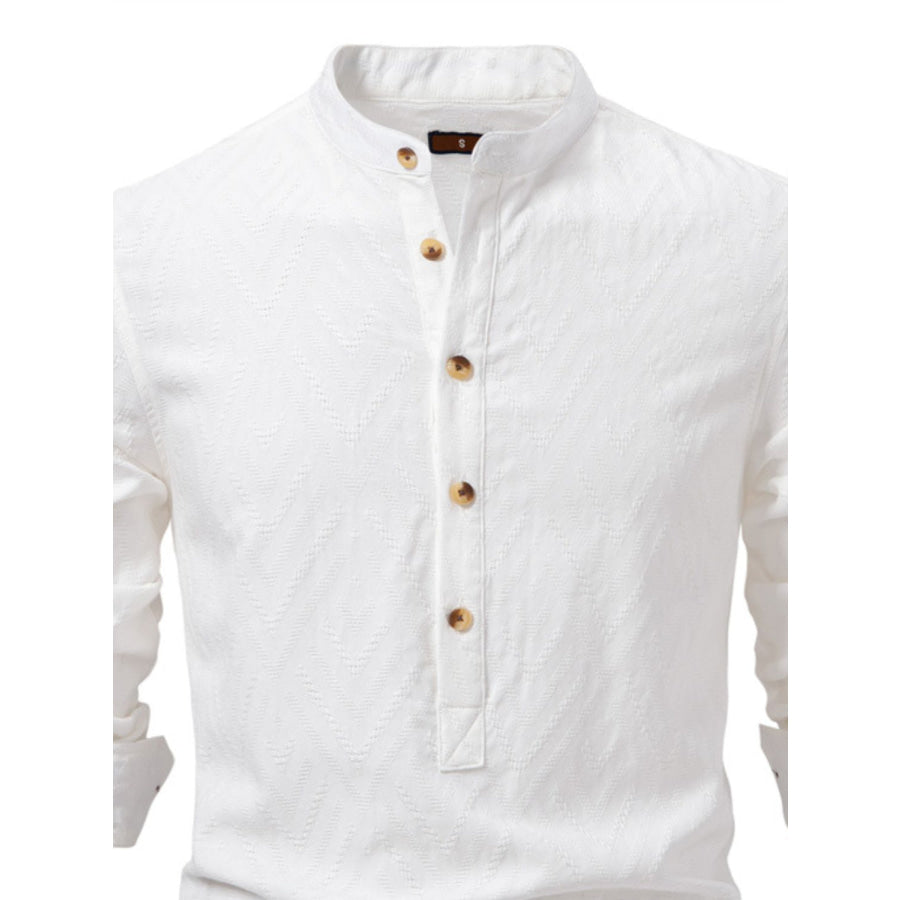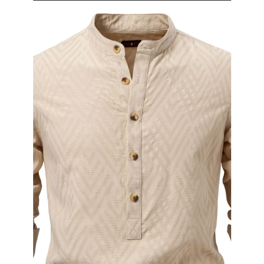 Men's Half Button Geometric Texture Collared Neck Shirt