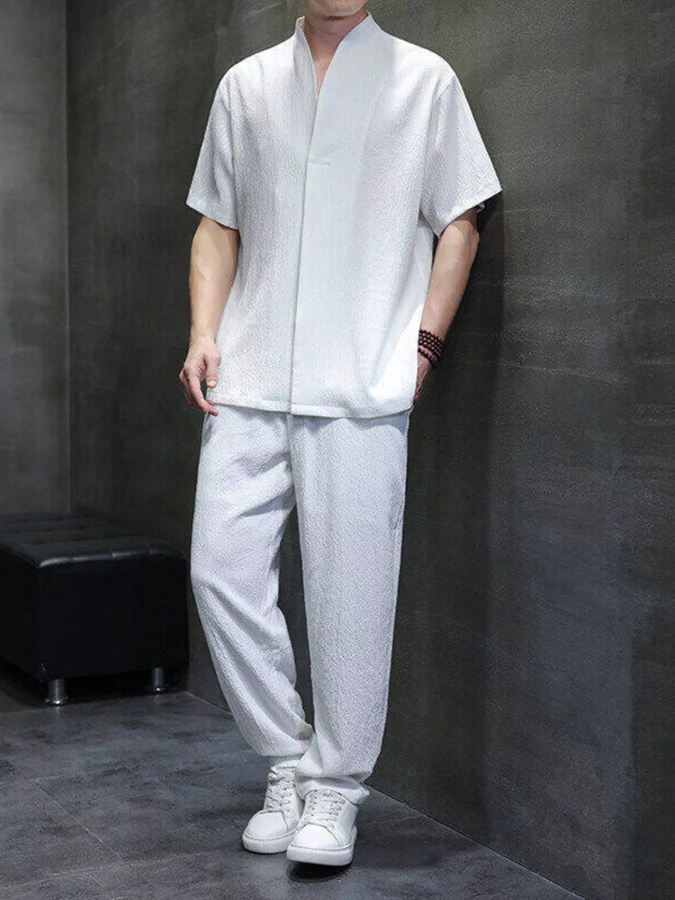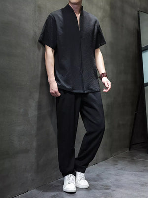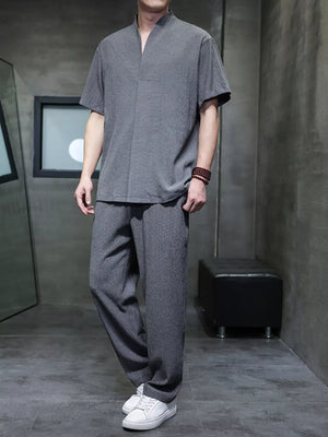 Men's Plus Size Casual Short Sleeve Top and Pants Set