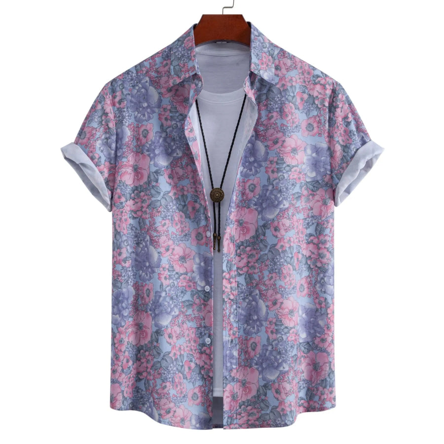 Men's Plus Size Floral Print Short Sleeve Casual Shirt