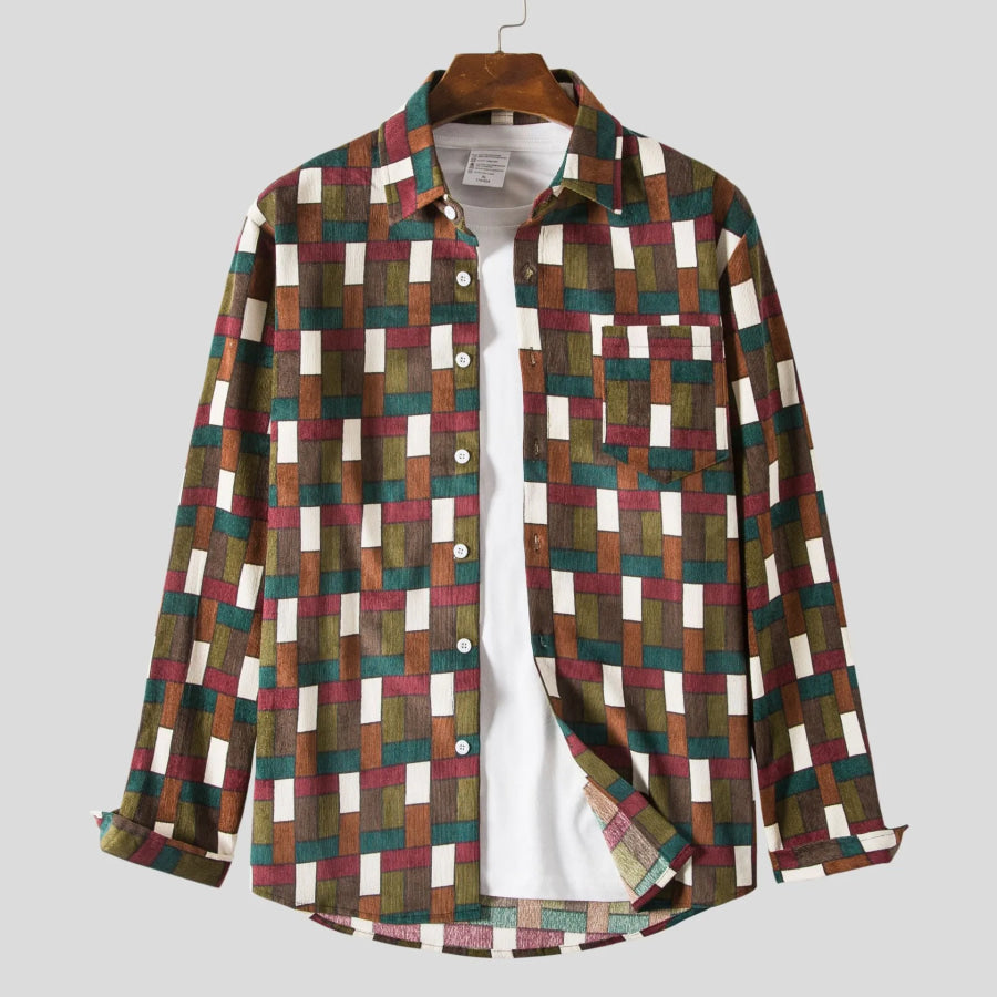Men's Plus Size Geometric Checkered Casual Button-Up Shirt
