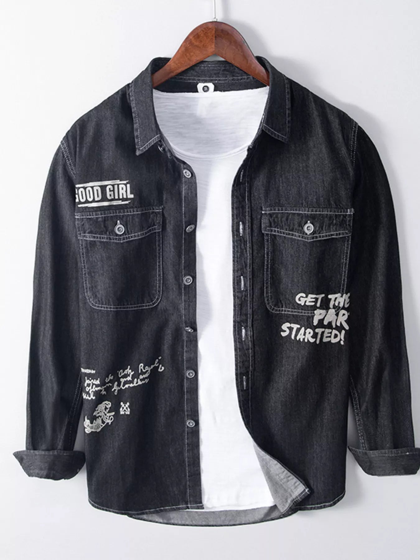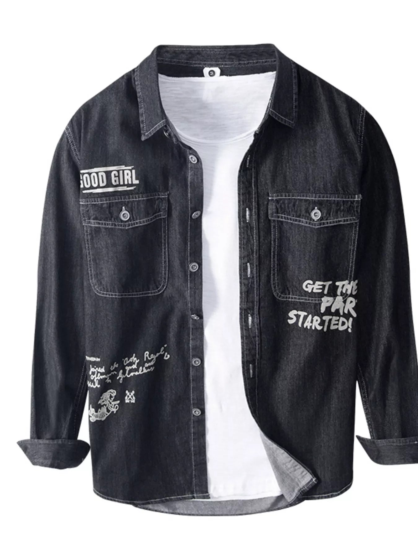 Men's Plus Size Letter Graphic Denim Shirt