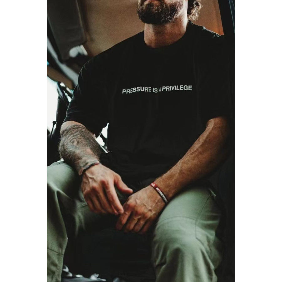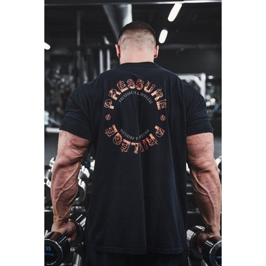 Men's Plus Size Letter Round Neck Short Sleeve T-Shirt