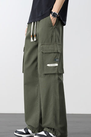 Men's Plus Size Loose Fit Cargo Pants with Drawstring
